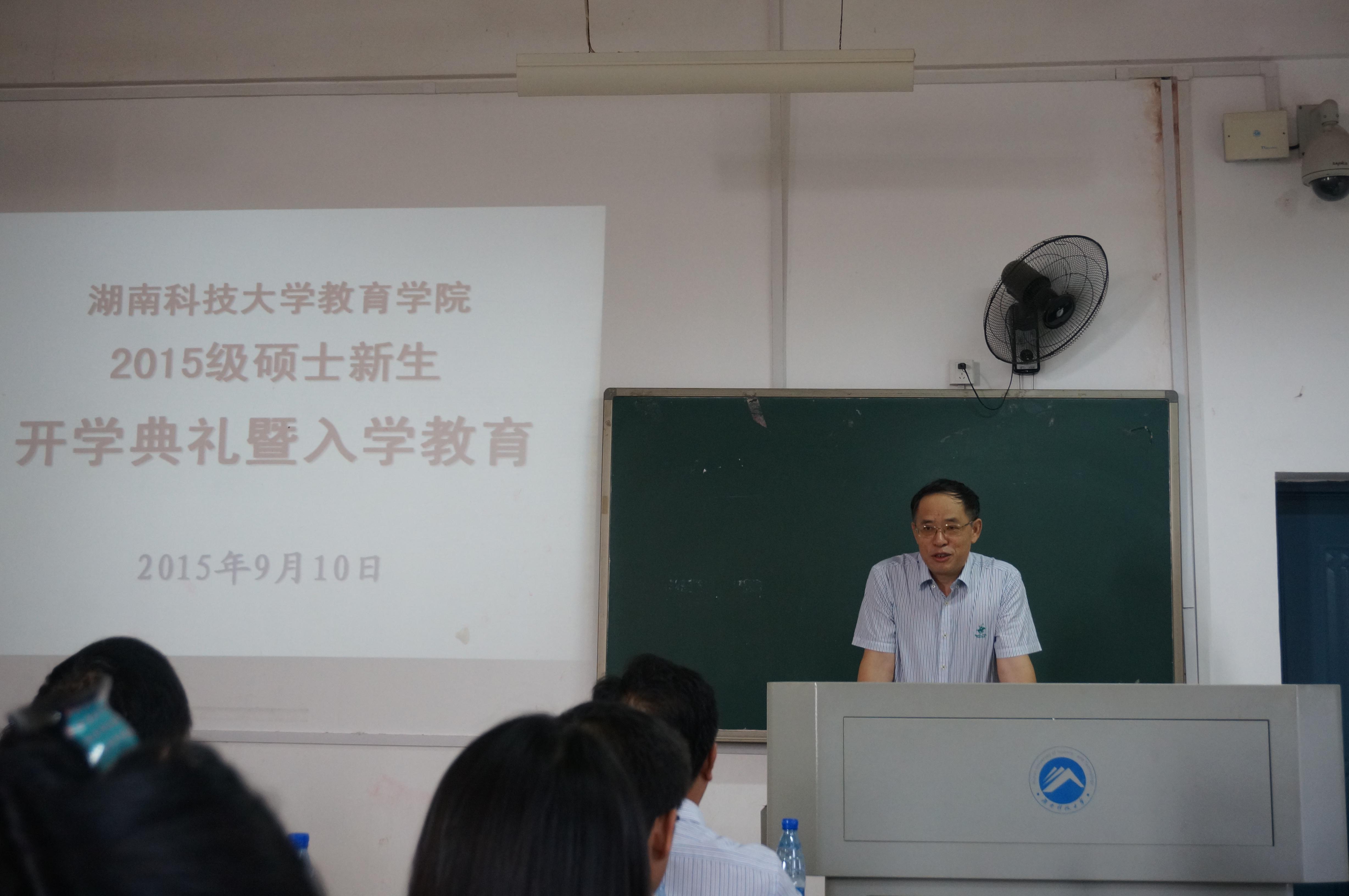 2015年9月10日上午9点,yl88858永利集团2015级研究生新生开学典礼暨入学教育在八教4-2顺利召开。院长陈春萍、院党委书记谭建平、副院长陈坤华、副院长周险峰、院党委副书记王伟清莅临了本次会议现场,同时出席还有相关学院领导、各方向负责人、硕士生导师及yl88858永利集团2015级全体硕士研究生。本次会议分为开学典礼和入学教育两大部分,由谭建平教授主持。