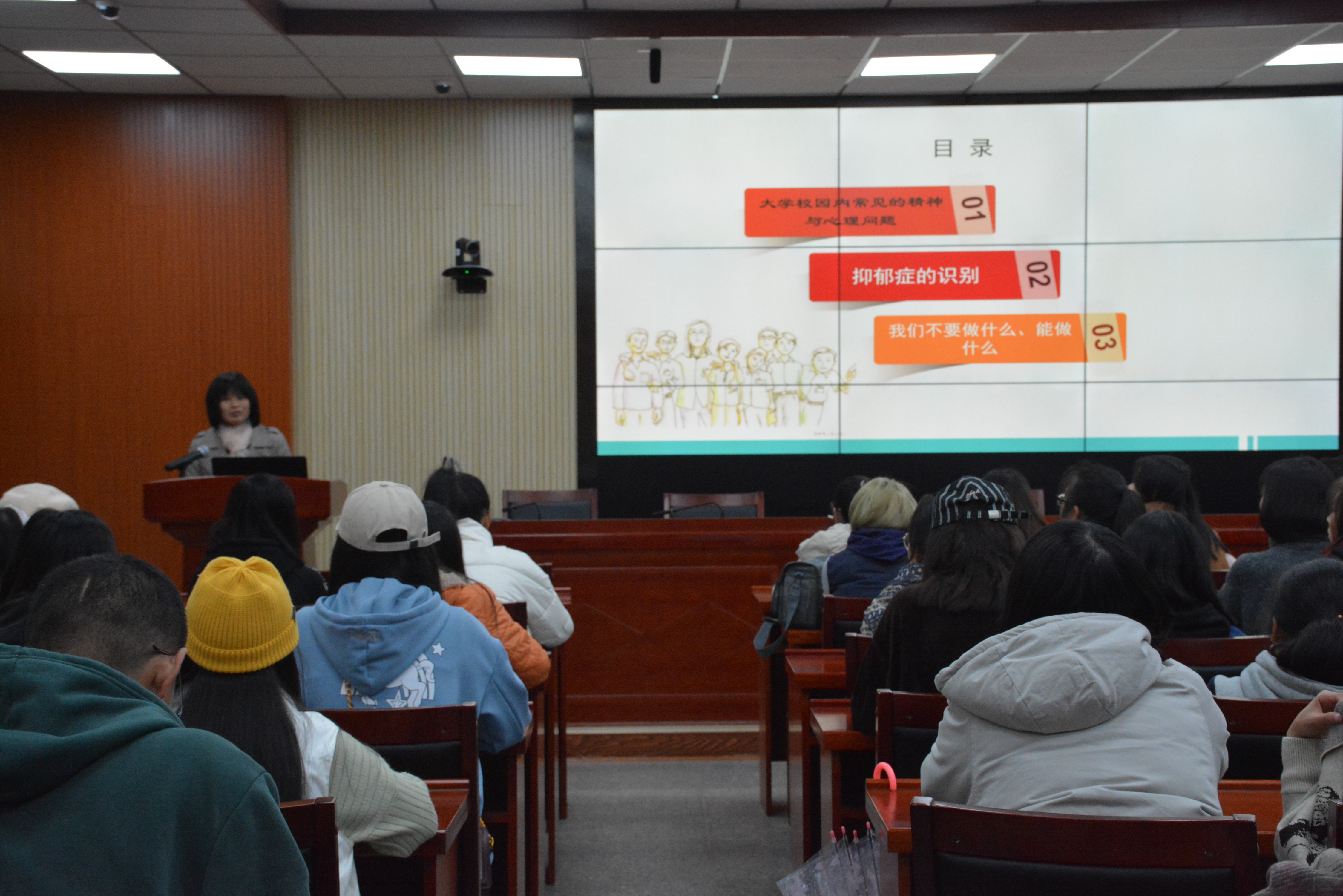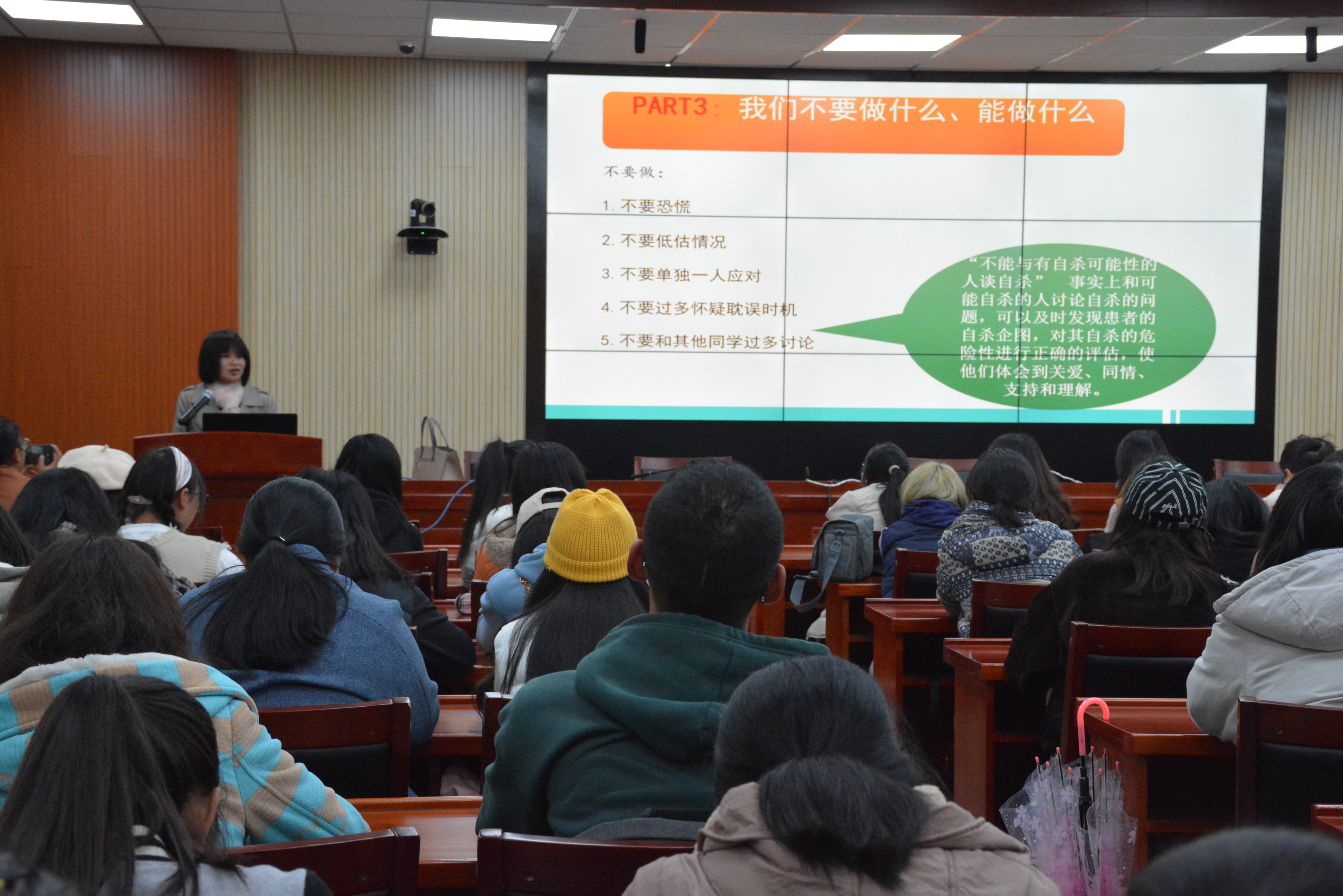 在培训中,练老师主要从大学校园常见的精神与心理问题,抑郁症的识别以及心理委员和寝室长应该做什么和不应该做什么三个方面展开。首先从心理健康常见的四个误区讲起,并介绍了大学校园内常见的心理问题,如恋爱、学业、经济、人际关系所导致的情绪问题、神经症、心境障碍、人格障碍等问题。其中,练老师着重为大家讲解了抑郁症的相关症状及危害,强调一定要留意类似的线索,及时告知老师防患于未然。紧接着,为了让培训学员更清楚应该如何正确高效的进行干预,练老师指出应重视特殊时期和特殊人群,善于发现危机信号,并一一详细说明。