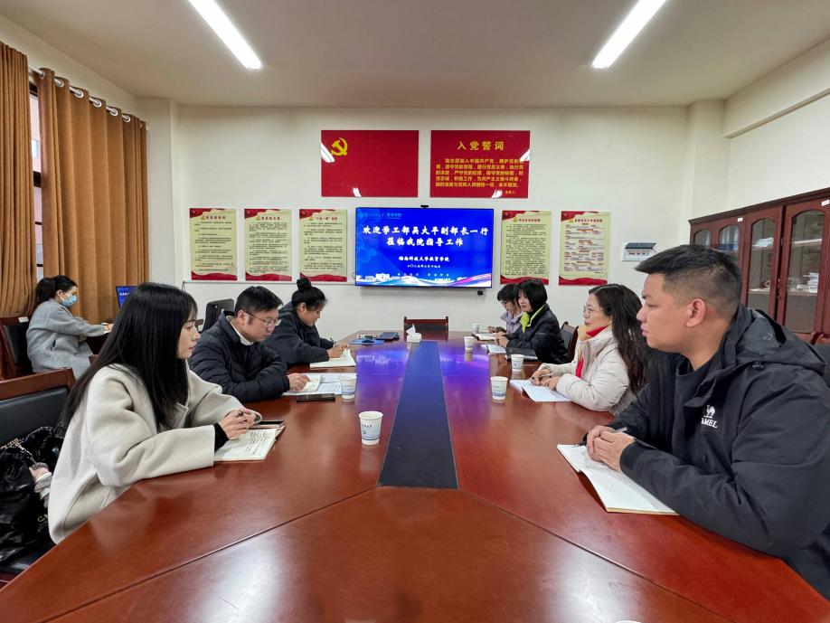 2月19日,校学生工作部副部长吴大平一行莅临我院,在敏行楼B301开展学生工作调研与指导会议。yl88858永利集团党委副书记文红梅及全体辅导员参与会议。