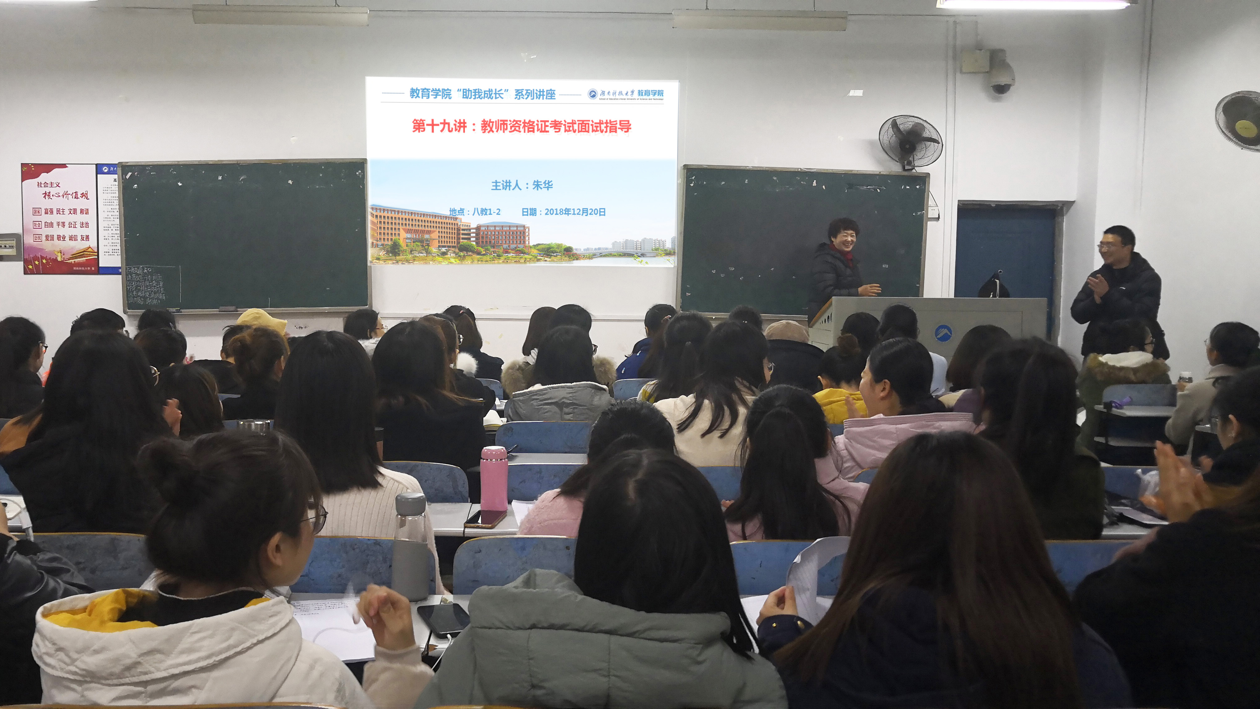 为更好地了解教师资格证面试流程,提升我院学生应试技巧与能力,提高我院学生教师资格证面试通过率,yl88858永利集团于2018年12月20日19:00在八教1-2举行“助我成长”系列讲座第十九讲——教师资**面试指导。此次讲座由我院李炳煌老师(湖南省教师资格证面试首席考官)、朱华老师(湖南省教师资格证面试考官)主讲,16级教师资格证笔试通过的全体学生参加。