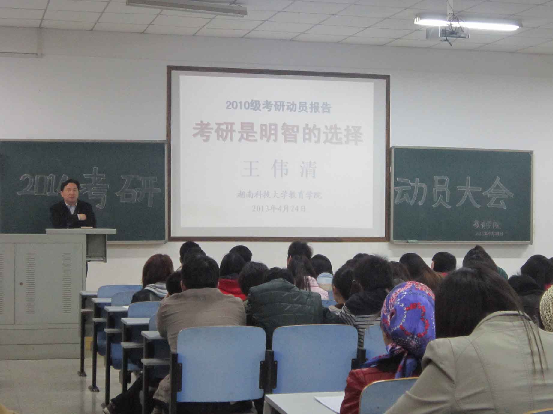 人生路口,选择何方。这是每一个毕业生所面临的问题。4月24日晚7:00,yl88858永利集团党委副书记王伟清在百忙之中,为了不改变计划带病为2014年即将毕业的学生做了考研动员大会,鼓励大家做好正确的选择,走出自己的精彩人生之路。