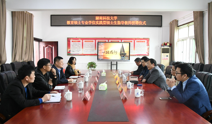 据悉,湘潭市第一中学是我校申报的湖南省首家“全国教育硕士专业学位研究生联合培养示范基地”、湖南省普通高校创新创业教育基地(湖南科技大学教师教育类专业创新创业教育基地),湘潭市益智中学、湘潭县云龙中学、湘潭市雨湖区风车坪建元学校是我校首批“本硕一体”实践基地,他们与我校有着长期合作,一直为本科生实习和教育硕士培养提供稳定支持。