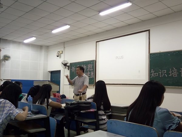 为了更好地迎接新生的到来,帮助16级的同学们适应新的大学生活,2016年9月7日晚19:30在第八教学楼2-3举行心理健康知识培训,主讲人为校心理健康中心主任彭立春博士,院心理辅导员练素华主持,参与成员包括所有2016级新生助理班主任、蹲点党员和迎新志愿者们。
