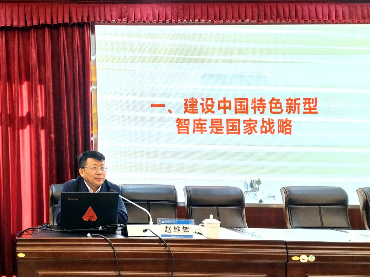 赵雄辉作“教育智库建设的实践与思考”的专题报告。首先,他以我国对内、对外各种类型的智库为例,对智库建设的必要性和重要性展开论述,指出教育智库是国家智库的重要组成部分。接着,他引用湖南省智库建设的相关政策文件,对省级重点智库的基本条件、成果形式、建设方向等进行了详细解读。随后,他就湖南省教育战略研究中心的目标定位、研究团队等的情况进行了介绍,并结合在座同学论文选题的实际需求,着重对“乡村教育”“义务教育质量”“课后服务”“特岗教师”“学生课业负担”等历年智库重要选题进行了深入解读。最后,他结合大量的现实数据和案例,针对研究生阶段积极参与到教育智库研究提出五点建议:(1)找到好的研究问题;(2)深入基层做现实调查;(3)做好数据分析和比较研究;(4)认真写出有特色的报告;(5)多途径让决策部门采纳。