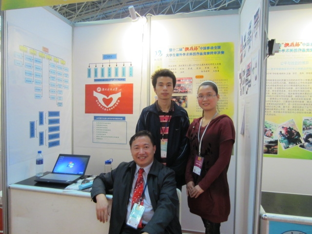 第十二届“挑战杯” 全国大学生课外学术科技作品竞赛于2010年11月份正式启动,到今年5月份,在王书记的指导下,课题组和其他志愿者共同努力,对作品《农村留守儿童心灵呵护志愿机制的研究与实践》进行了反复修正与完善,先后获得校级“挑战杯”一等奖、省级“挑战杯”一等奖,并被推荐至全国参与激烈角逐。最终在全国1935多所高校16976件作品中脱颖而出入围终审决赛,以严谨的构思和精彩的答辩赢得评委青睐,荣获国家“挑战杯”二等奖。