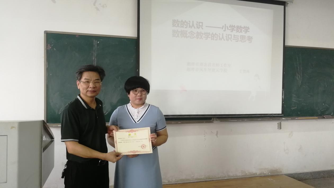 2019年9月30日下午,湘潭市雨湖区风车坪建元学校校长、谭念君名师工作室成员、全国儿童心理健康教育先进个人、湖南省最美扶贫人物王智萍老师应邀参加“躬行讲堂”,主讲2017级小学教育专业课程:《小学数学课程与教学论》,讲堂由我院党委书记李炳煌教授主持。