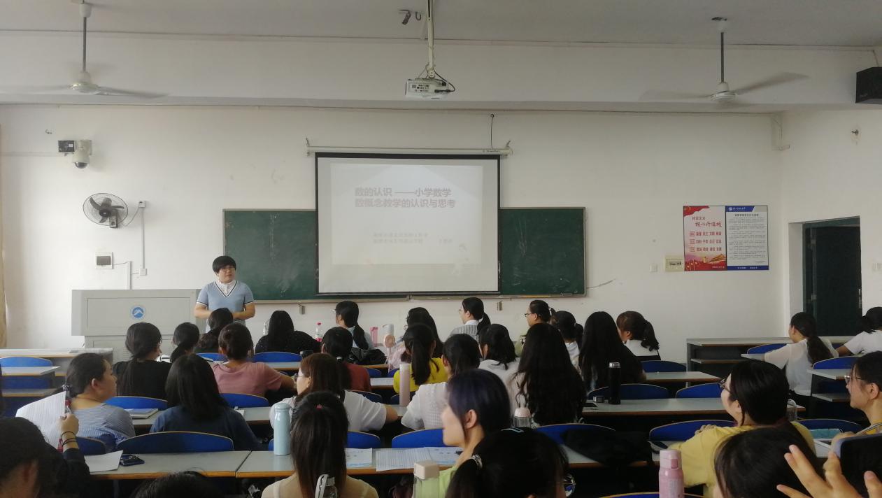 王智萍老师带来两个专题教学:《数与代数教学策略》、《让儿童的数学表达“形神兼备”》,力争让同学们对小学数学教学方法有更为直观的认识。