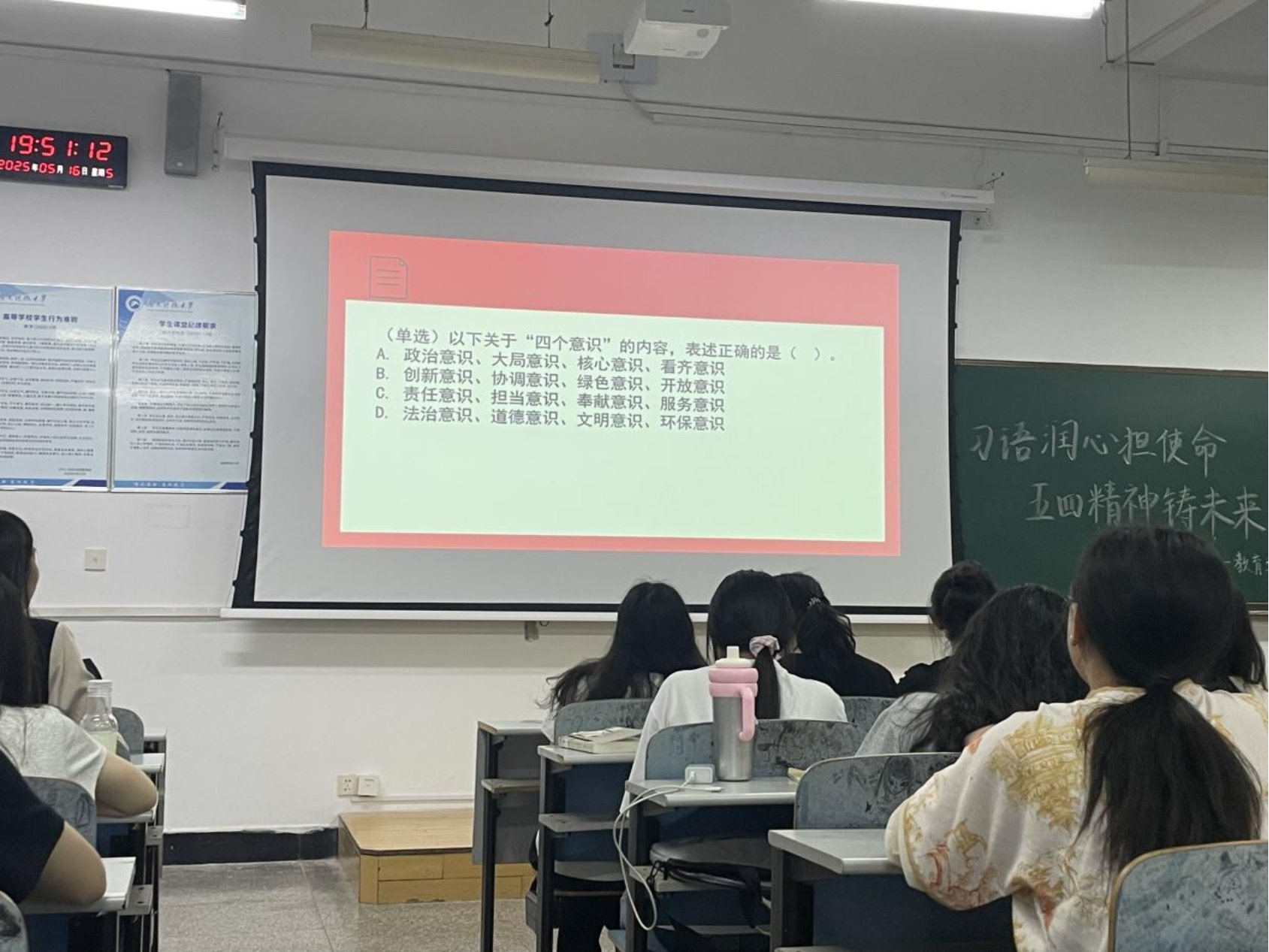 主持人向学员们深度剖析了习近平总书记在庆祝中国共产党成立100周年和庆祝中国共产主义青年团成立100周年上的讲话,并详细地解读了五四精神的内涵,激励大家将五四精神付诸于实践,将习语牢记心中。学员们对习近平总书记对青年的期望以及五四精神有了更深刻地认识。在“知识竞答”环节中,大家积极参与,配合默契,营造出了和谐融洽的集体氛围,青马培训班的团结协作精神与积极学习风貌得以充分展现。