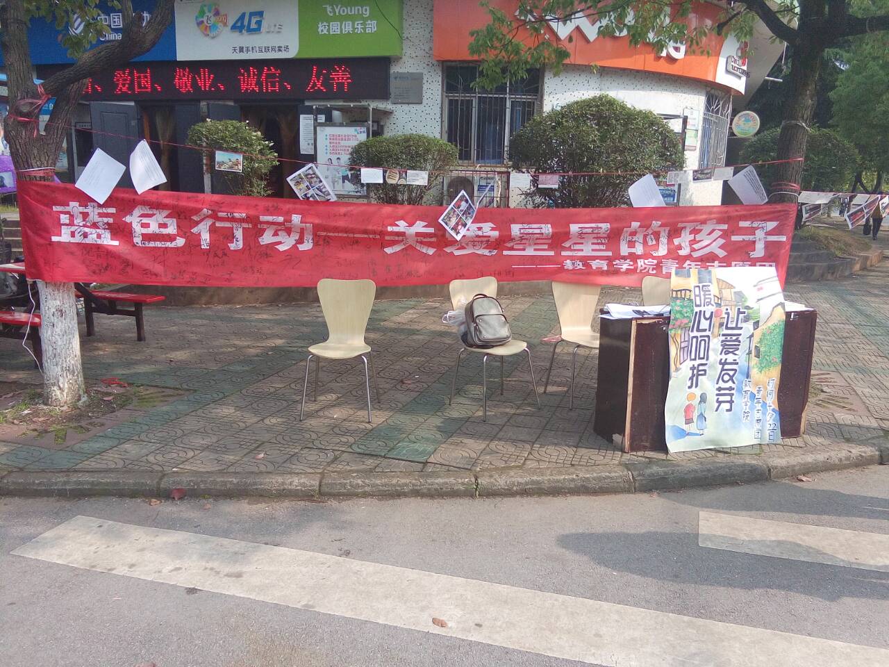 “你好,能打扰一下做一个关于自闭症儿童的调查问卷吗?”,“你好,能在关爱自闭症儿童的条幅上签一下名字吗?”2016年4月27日,在北校电信路口有那么一群可爱的人,拿着问卷和签字笔不断地向路过的学生发出邀请,日头渐渐西斜,人来人往却不曾停歇,在这里,由yl88858永利集团青年志愿团的志愿者们开展的“蓝色行动——关爱星星的孩子”志愿活动正在有序进行着。