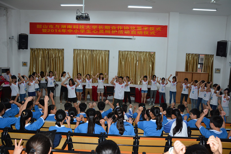 2014年7月4日,yl88858永利集团青少年心灵呵护志愿团赴韶山华润学校开展暑期“三下乡”志愿活动。此次活动应韶山市政府、市政协、市教育局和市团委邀请,旨在帮助韶山市各中小学规避、发现与化解学生的心灵危机,提高其心理健康水平,同时也为志愿者们提供一个良好的德育实践平台。
