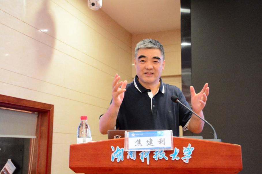 随后,湖南科技大学人文学院吴广平教授作了《教育是爱的事业》的特邀报告。他通过解读孔子的“仁爱”思想、阐述陶行知“爱的教育”理念,指出“爱是教育之本”的核心内涵,接着结合自身经历紧扣“敬畏”“磁场”“专一”“执着”“奉献”几个关键词,生动幽默地诠释了教师职业应该具有的丰富内涵、过硬的素养、崇高的使命。吴老师的报告现场掌声雷鸣、笑声不断,是一场高水平的师德修养学术讲座。