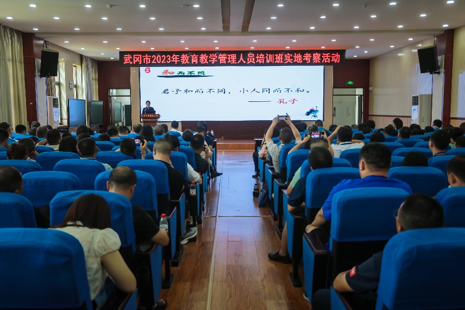 实地考察后,九华江声中学书记、校长刘辉开展了题《成就更美好的学校》的讲座,向参训学员们介绍了该校的办学初心、育人方向、教学理念、教学设施、教师团队和办学效果,分享了她新建学校的心路历程。