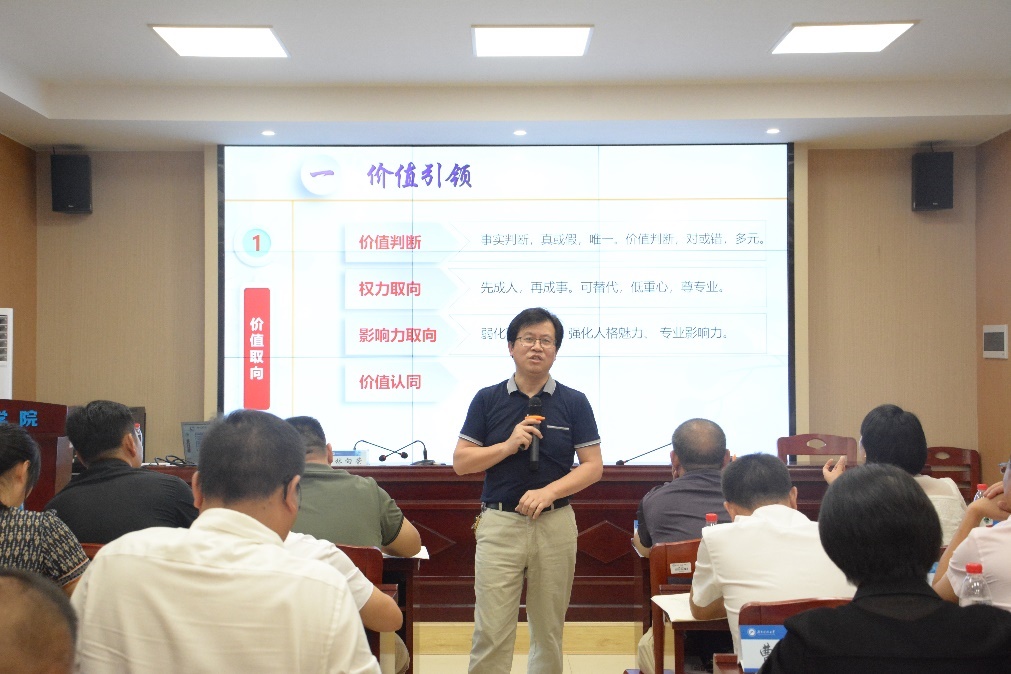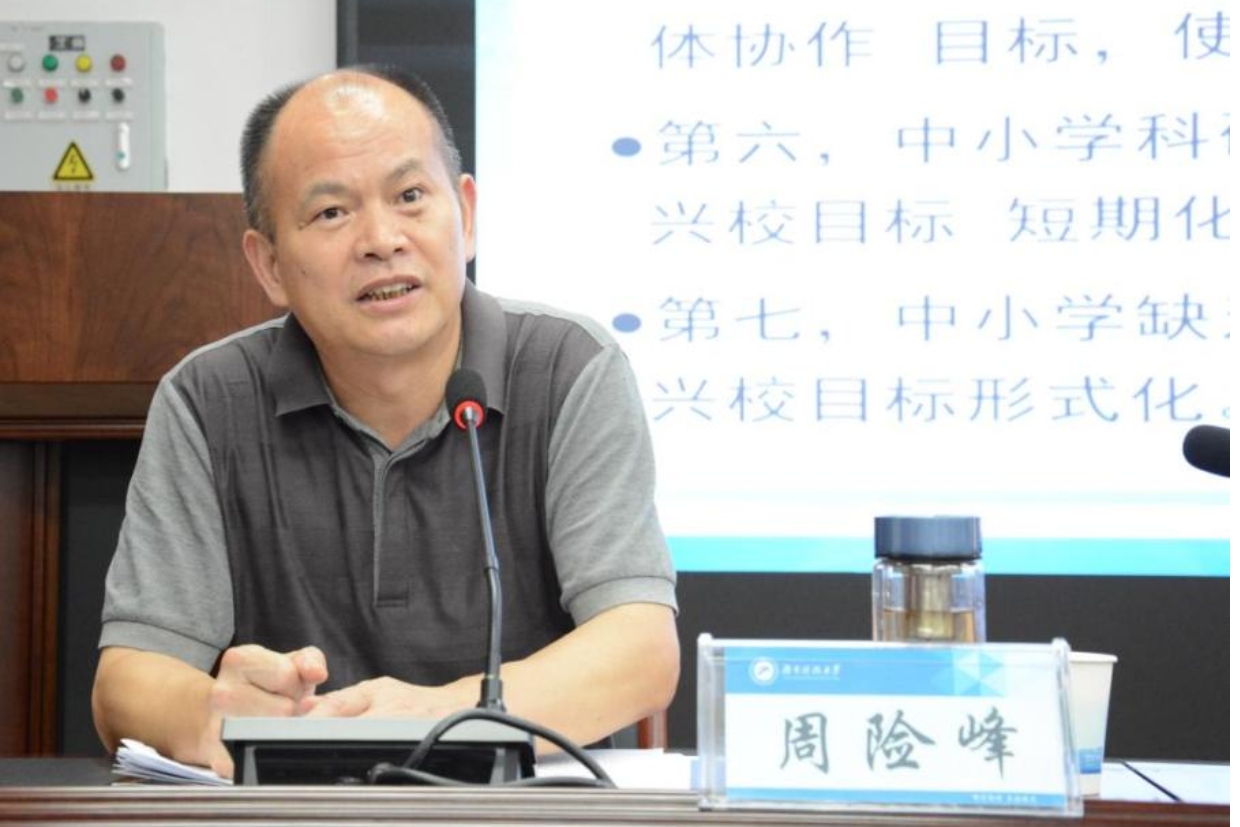 湖南科技大学教学评估与教师专业发展中心主任周险峰教授在骨干教师班做了题为《中小学科研管理存在的问题及对策》的专题讲座。他从学员如何理解科研、从事科研的经验和怎样让科研更有价值等方面阐释了科研对中小学教师专业发展的重要性和对学校发展的战略意义。