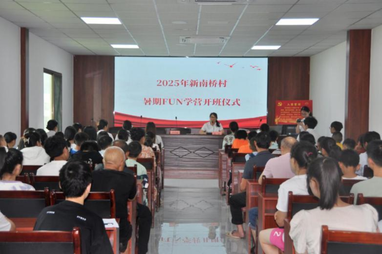 7月8日上午,湖南科技大学木槿感恩支教团与浏阳市枨冲镇新南桥村共同举办的2025年“FUN学营”开营仪式顺利举行。