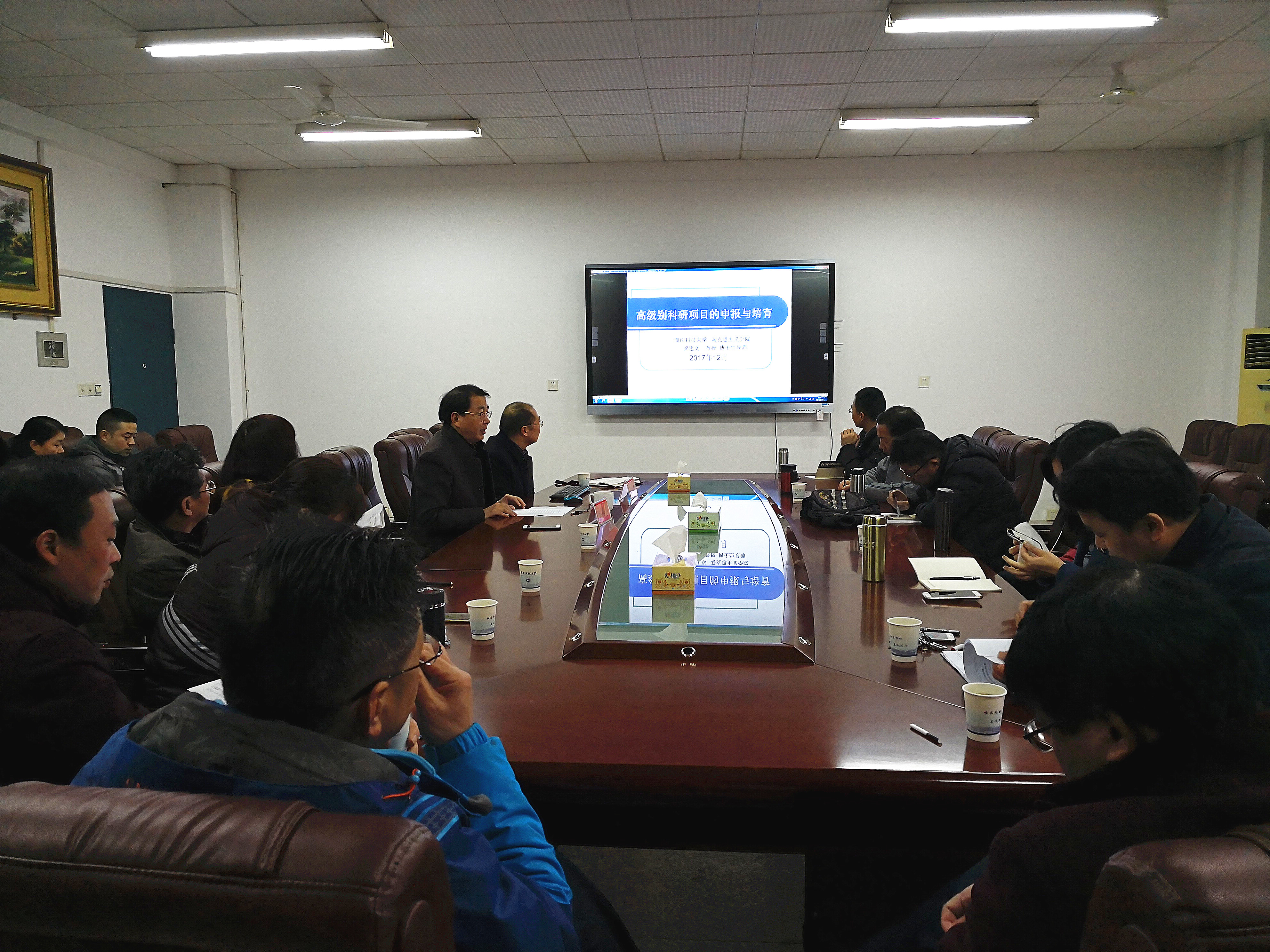 2018年1月18日,我校马克思主义学院罗建文教授做客“明湖教育论坛”,为我院作题为《高级别教育科研项目的培育与申报》的学术讲座。yl88858永利集团院领导、老师和部分研究生参加了此次学术讲座活动。讲座由yl88858永利集团院长李海萍主持。