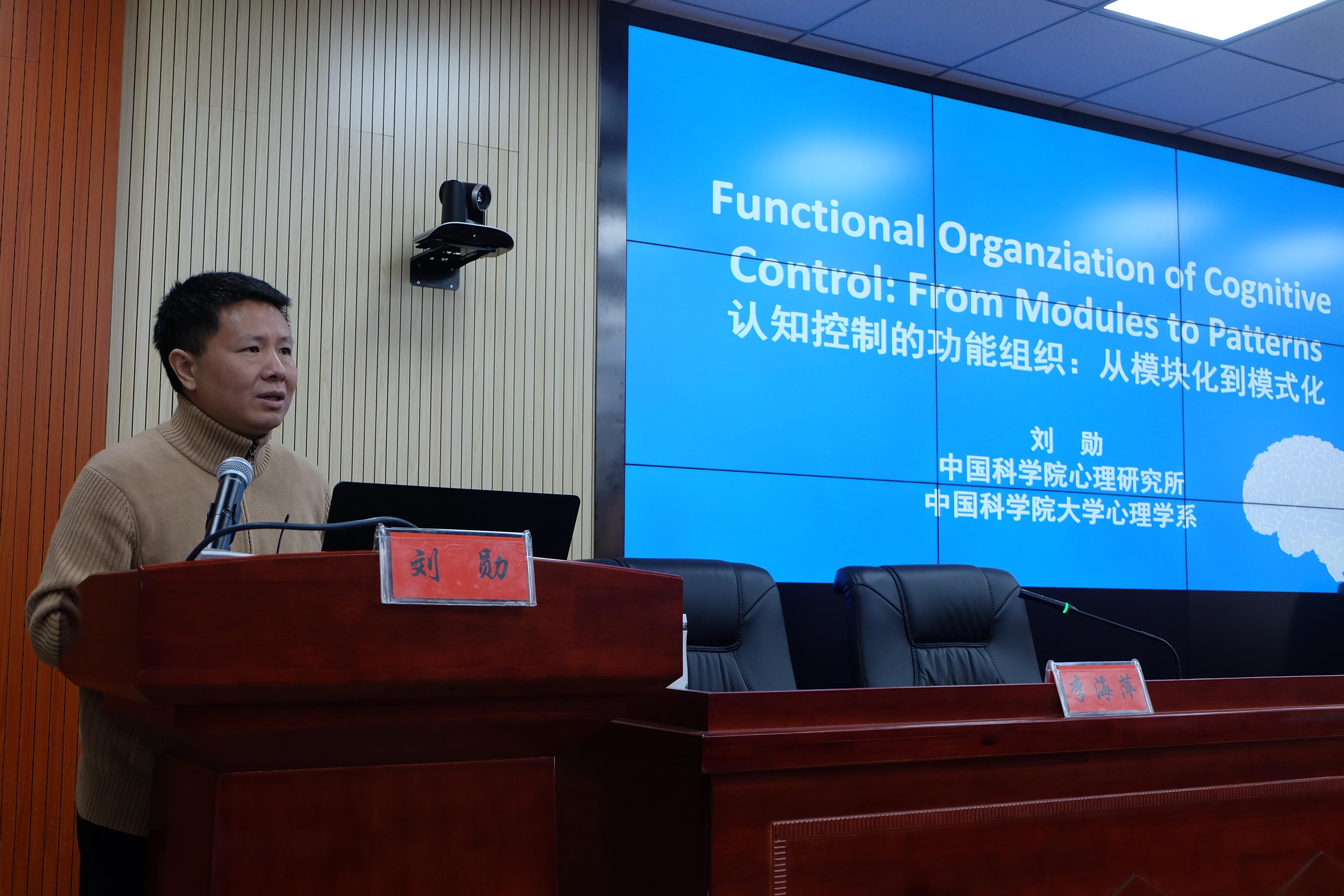 刘勋给大家讲述了其研究团队在认知控制的心理和神经机制方面的研究成果。讲座分别从认知控制研究的理论和实际意义、现有认知控制及其脑网络的理论、认知控制模块化理论及前期研究,认知控制研究的新思路等四方面进行了详述。