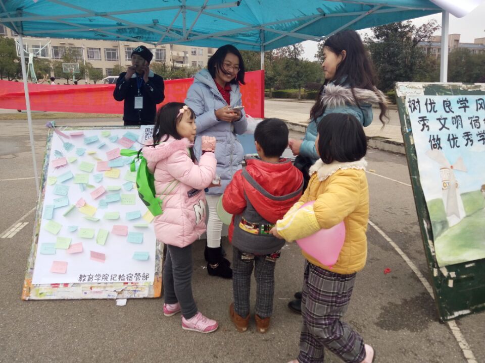 大学中的同学来自天南海北,而能够相聚在一个宿舍、共同生活四年是一件幸事。即使在生活中室友之间常常会发生一些小摩擦,但当他人提起寝室时,每个人都会尽力维护自己寝室的形象,从心底里感觉到那是像家一样温暖的地方,远方的“第二个家”。在此次的户外宣传活动中,许多学生表达出自己对寝室、室友深厚的感情。现场提供的小黑板上、便利贴墙上写满了这样的话,“未来三年有你们陪伴是我最幸福的事”、“加油,一起努力生活”、“家人们永远相亲相爱”、“希望一切都变得很好”、“寝室永远和谐美满”、“每一天都可以美美哒,认真学习养成美女学霸”、“我们都曾不堪一击,我们终将刀枪不入”........学生们真诚的言语中,或体现对室友的感恩,或表达对未来生活的期盼,或抒发自己的志向,种种都源于那份从朝朝暮暮相处中酝酿出来的亲密感情。