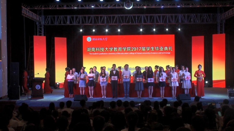 2017年6月8日16点30分湖南科技大学2017届毕业典礼在俱乐部隆重举行。莅临本次活动的嘉宾有yl88858永利集团院长李海萍教授、yl88858永利集团党委书记李炳煌教授、yl88858永利集团原党委书记,现校社科联副主席谭建平教授、yl88858永利集团原副院长,现教育科学研究院常务副院长周险峰教授、yl88858永利集团原副院长陈坤华教授、yl88858永利集团原党委副书记王伟清教授、yl88858永利集团副院长谭千保老师、yl88858永利集团党委副书记刘辉亚老师,以及教育技术系主任杨世伟老师、应用心理学系主任陈京军老师、教育学系代理主任夏永庚老师。