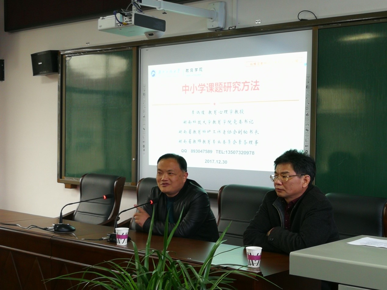 2017年12月29日,学院党委书记李炳煌教授带队,调研组赴双峰县永丰镇中心学校, 就“国培省培计划(2018)”如何更有针对性地满足乡镇中小学教师的培训需求,与该校领导、老师代表座谈。