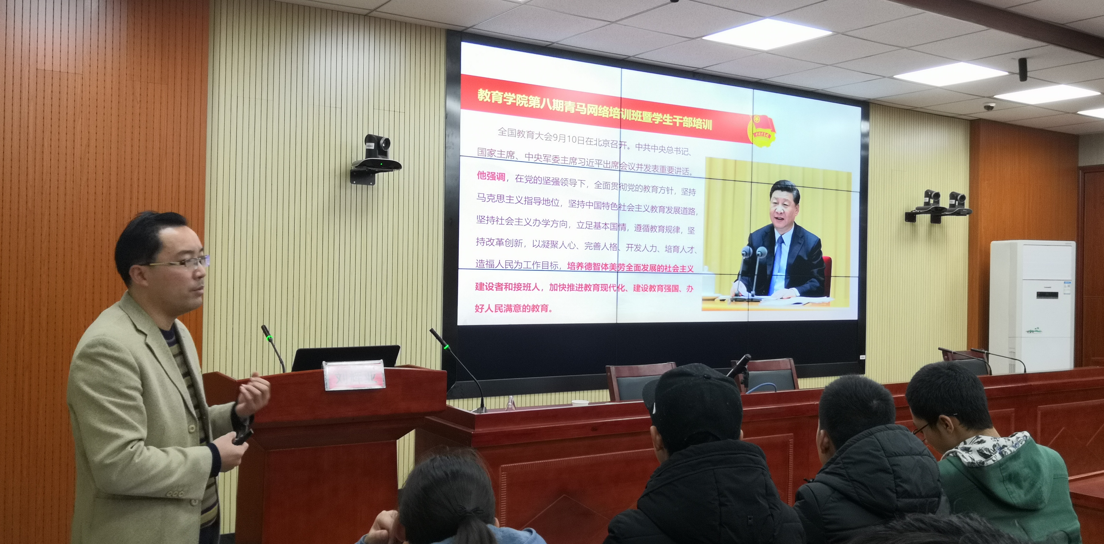 2018年12月4日16:20,我院在第八教学楼308会议室开展以“纪念毛泽东诞辰”和“传达全国教育大会精神”为主题的第八期青马网络班培训暨学生干部培训大会,由yl88858永利集团党委副书记刘辉亚以及团委书记练素华老师主讲,所有青马网络班学员参加。