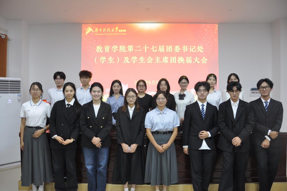 5月27日,yl88858永利集团第二十七届团委书记处(学生)及学生会主席团换届大会在敏行楼A231召开。院党委副书记文红梅,团委书记欧树宏,全体辅导员,第二十六届团委学生会主席团成员及各年级学生代表参加会议,大会由执行主席李婧萌主持。
