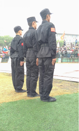 “虽然不能进入到赛场上,但是偶尔瞟几眼也感到满足了,站在这里是累,但是看到大家的呼声这么高,都这么有热情,也没什么怨言,很高兴能站到这里。”“训练虽然苦,但是每次运动会时还是会争取来这里值班。因为每次值班的人数都是有限的,所以都要考自己来争取。”2015年10月30日,湖南科大秋季运动会进行时第二天,这是在采访学校信息安全队成员时他们所提到的。听不到任何怨言,他们以一种累并快乐着的状态存在着,在入出口处、跑道旁、楼道旁都能看到他们挺直的身躯。“头要正,颈要直,眼神要坚定,要狠……”他们就这样每天严格要求自己训练,在赛场上展现出军人最美的姿态。或许在别人眼中他们是高冷的,但是很少有人会提及到他们背后的心酸,每天摸黑起来训练,每晚伴着月光孤独回家,而这一切,他们选择承受。运动会上呈现的就是他们最美的自己!