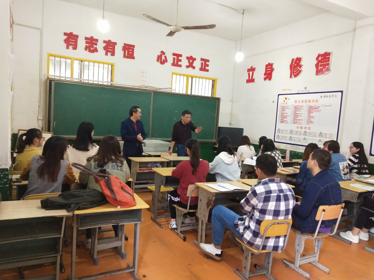 上午八点三十分,实习带队老师朱华主持召开了实习生交流会。在交流会上,李书记首先代表学院对所有实习生及带队老师表示亲切慰问,然后就实习工作中的课堂教学、班级管理、教育调研等问题进行深入指导,并身体力行地为实习生们做教学语言示范。李书记指出,教育实习对于一名师范生师风师德的培育、教育教学技能的训练具有重要意义。好教师是从不断的实践与反思中走出来的,每一位实习老师都要怀着一颗谦虚而热忱的心,多听课、多听优质课,多磨课、多用心磨好课。对于班级管理,不仅要有目标还要讲方法,应拿出新时代教师该有的范儿。接着,刘辉亚书记详细了解了实习工作开展的进度以及实习生的工作生活等问题。刘书记表示,学院会尽最大努力给予大家最坚实的支持,也希望实习生能践行“教自本起,育从心出”的宣言。他还勉励所有实习生充分把握实习机会,主动观摩优质课,有针对性地训练学科语言,在相互分享学习体会的同时注重记录、积累实习生活中的点点滴滴。
