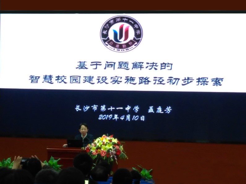 紧接着,长沙市第十一中学校长聂庭芳做了题为“学校教育信息化建设的4个支柱”的专题报告。