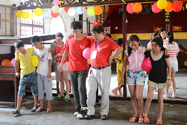 王伟清教授和孩子们一起参加同伴竞技游戏