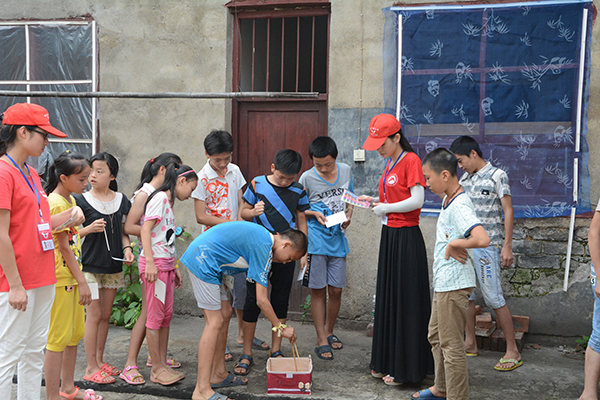 早八点三十分,湖南科技大学研究生暑期科研服务志愿队在整合队伍之后,开展了各式各样有关心理的同伴竞技游戏,每个游戏中都设有主试、助手和观察手,游戏规则是通关获积分,攒积分换礼品。让孩子们在自由的环境中通过同伴竞技游戏,宣泄情绪、释放各种压力、缓解焦虑,我们的观察手则在旁观察孩子们的行为表现作为后期评判孩子心灵健康水平的资料依据,以此帮助孩子们达到“美丽心灵”的目的。我院研究生分别负责不同的游戏种类,例如,15级硕士研究生吴伟波负责的大筷夹乒乓球、曹丹负责的猜谜语游戏等都受到营员们的高度欢迎,孩子们积极参与,更想出互帮互助,共同攒积分赢取特等奖的好主意。活动的高潮部分,则是在我院王伟清教授和孩子们一起玩游戏的时刻,孩子们还争相向我们的老小孩传授游戏经验,整个上午的活动在欢声笑语中,在孩子们的慢慢的收获中结束。