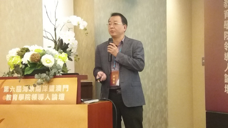 论坛以台北市立大学教育行政与评论研究所吴清山教授“教育4.0时代的教师教育展望”与北京师范大学教育学部部长朱旭东教授“新时代的教师教育”的专题演讲开场。随后,各yl88858永利集团(部)院(部)长围绕“未来如何发扬师道精神以淳化师德”“未来如何培育高素质良师以应对全球化教育改革”“未来如何改革教师教育培育体制以引领新时代”“未来如何保障教师工作与生活以提升教师专业地位”“教师教育的理论进展与实践动态”“有关未来教师教育应有发展趋向”等议题展开研讨,为发扬师道精神、培育高素质良师、实现关怀与专业的教师教育建言献策。期间,我院院长李海萍教授应邀在会上作了题为《地方综合性大学推进教师教育体系建设的探索与实践——以湖南科技大学为例》的发言。