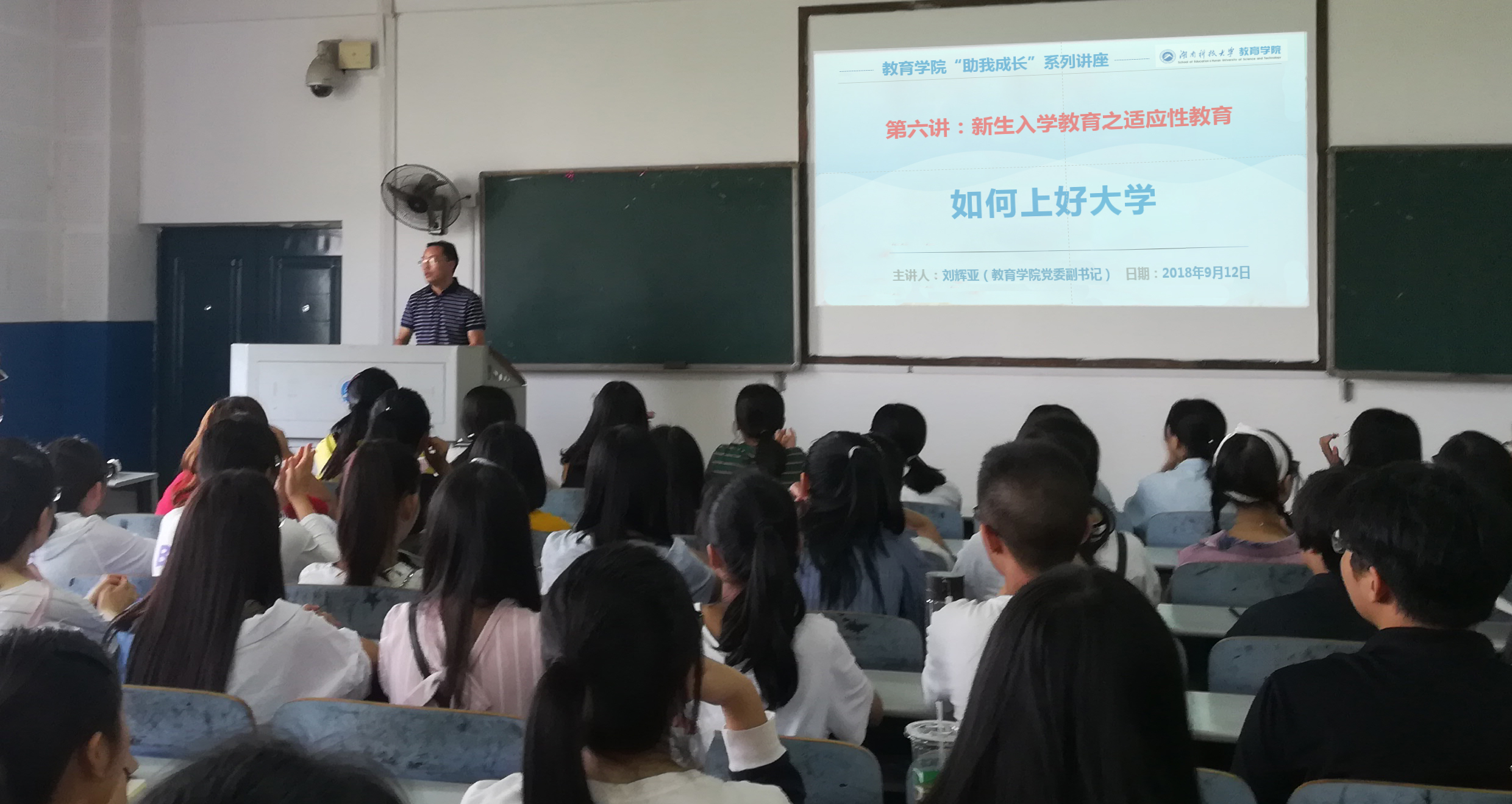 为帮助18级新生尽快适应大学生活,顺利完成角色过渡,合理规划大学阶段学习和生活,2018年9月10日19:30,yl88858永利集团“助我成长”第六讲:《新生入学教育之如何上好大学》在第八教学楼3-3顺利召开,由学院党委副书记刘辉亚主讲。