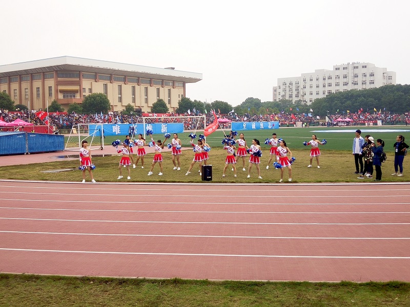 在运动员为学院争光拼搏时,我院的啦啦队也积极准备着,她们身穿短袖短裙,整齐划一的动作,洋溢着满满的热情,她们为运动员们加油助威,动作铿锵有力,体现了yl88858永利集团良好的精神风貌。