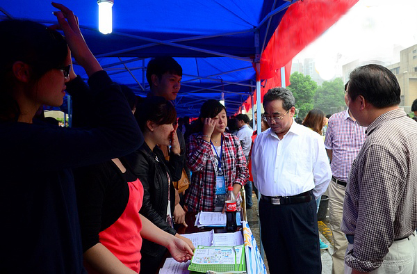 9月7日,迎新第二天,校党委书记田银华、校长刘德顺、副校长朱川曲一行前往南北校各迎新站点视察迎新工作,图为田银华书记、我院院长陈春萍教授、书记谭建平教授以及副书记王伟清教授、学工办主任胡银华老师视察我院迎新工作。