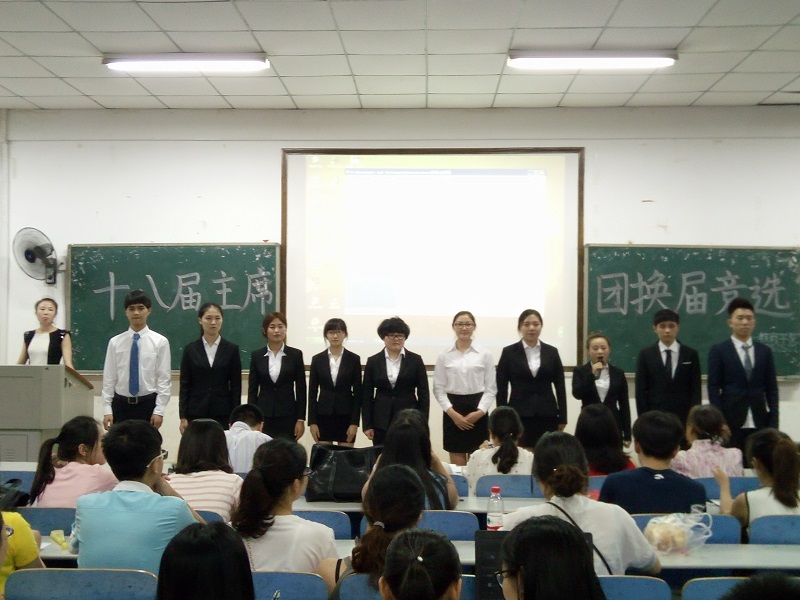 2016年6月7日19点30分,yl88858永利集团第十八届主席团换届竞选在第八教学楼2-3教室如期进行。出席现场的嘉宾有yl88858永利集团党委副书记王伟清教授,yl88858永利集团学工办主任李涛,学工办老师练素华、胡银华、尹琼芳、腾茜茜,及yl88858永利集团第十七届主席团成员。