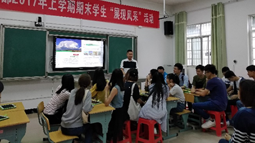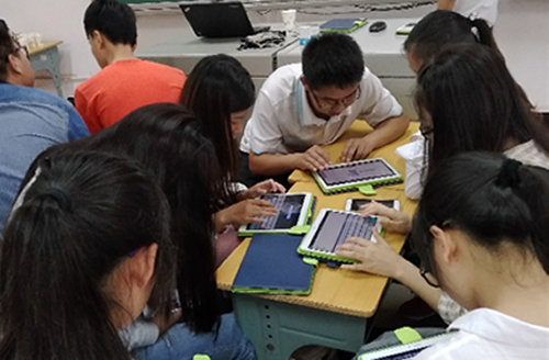 6月15日,我院2015级教育技术学专业本科生在王贤文和张克敏老师的带领下前往湘潭市特殊教育学校见习。见习活动由湘潭市特殊教育学校陈芳老师和天闻数媒的袁老师共同主持。陈老师介绍了特殊教育学校的信息化建设和电子书包课堂应用的基本情况。袁老师介绍了CCE云课堂,该课堂以“电子书包”为媒介,可以实现课前、课中和课后的系统性教学,具有高效、便捷、实时互动等特点。同学们分组亲身体验了云课堂,并与老师交流、学习老师的隐性知识。
