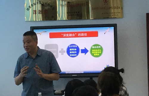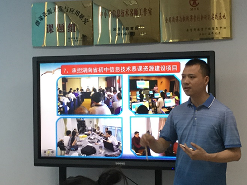 6月21日,2015级教育技术学专业本科生在吴新宁和张克敏老师的带领下前往湘潭市第一中学见习。见习活动由湘潭市中小学信息技术工作室的首席专家宋见林老师和湘潭市第一中学高级教师毛方吉老师共同主持。毛方吉老师介绍了湘潭市中小学信息技术工作室近年来取得的成就,以幽默风趣的方式阐述了教学与技术融合的前沿内容,包括MOOC、SPOC、ETopia等。宋见林老师为同学们展示了高效搜索高清和动态图片的技巧以及团队三至五年内的项目规划,并以实例展示信息技术的教学优势,强调教师需求为解决信息化教学过程问题的出发点。之后同学和老师就相关问题展开了深度交流。
