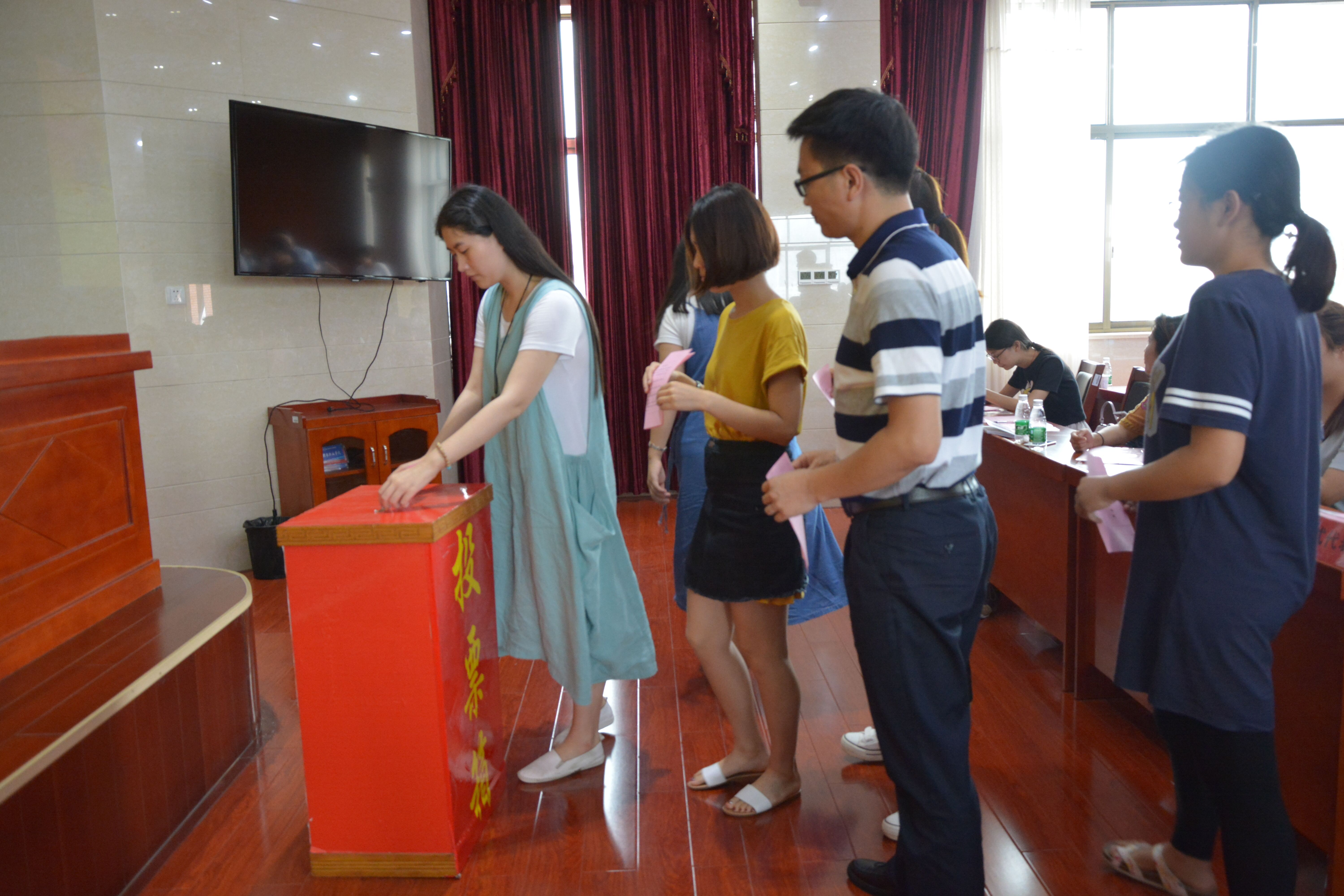随后,大会审议通过了《大会选举办法》(草案),刘辉亚书记宣读监票人、计票人名单,工作人员宣读校党委组织部关于yl88858永利集团党委换届候选人、预备人选的通知。接着全票通过的监票人王方当场检查票箱,计票人分发选票,大会采用无记名投票方式和差额选举办法,全体与会党员认真行使选举权,监票人及计票人收集选票并做统计。计票期间,全体党员还一道观看了党风廉政教育警示片,让每位党员铭记自己的责任,发挥先锋模范作用,树立始终为人民服务的态度。统计完毕后,监票人报告计票情况,刘辉亚书记宣布第四届党委会委员名单,刘辉亚、李炳煌、李海萍、张晓报、陈京军、詹玮、谭千保七位当选为中国共产党yl88858永利集团第四届党委员会委员。