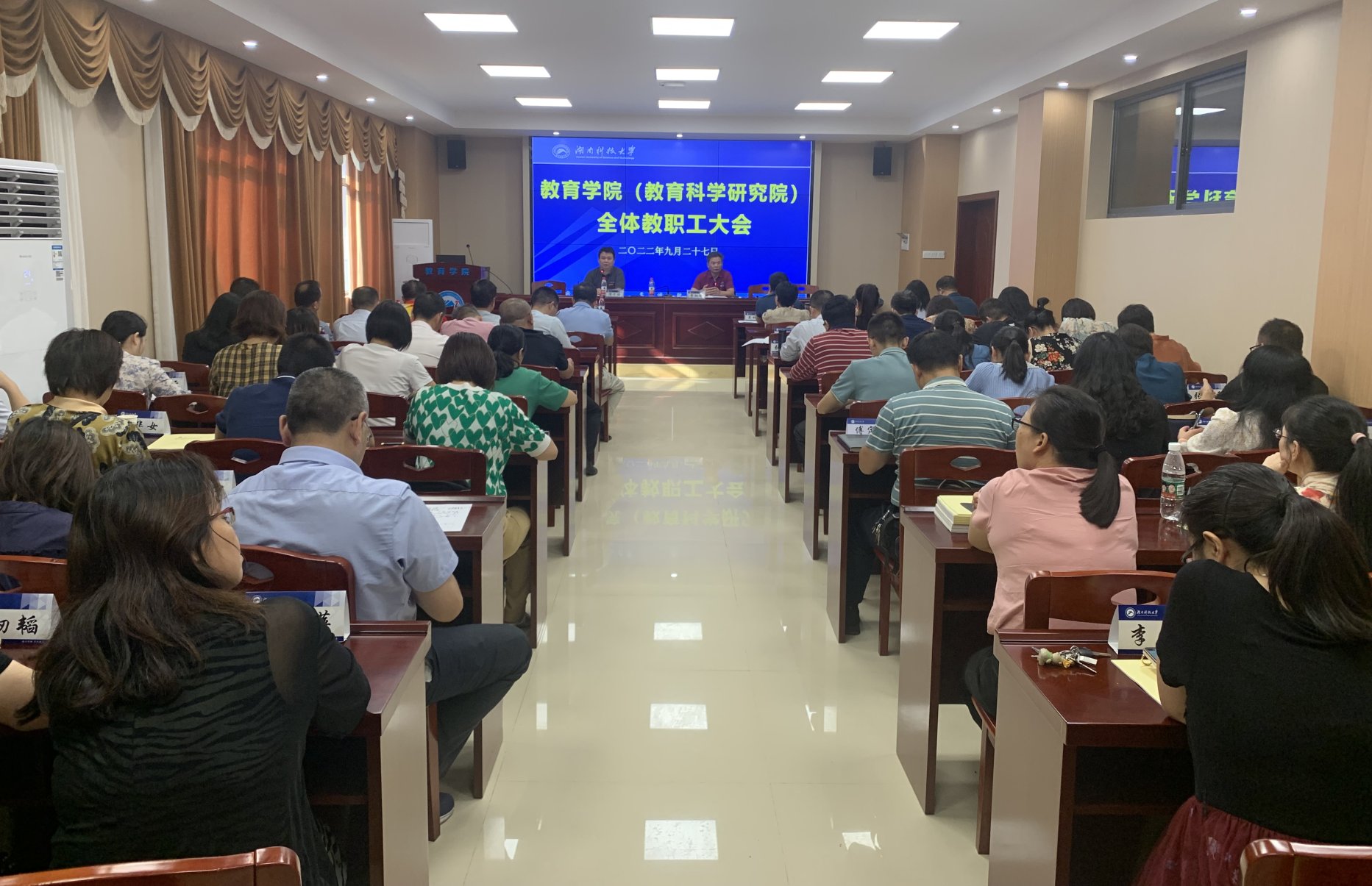 9月27日,yl88858永利集团(教育科学研究院)在敏行楼A333会议室召开2022年下学期第2次教职工大会。院党委书记李炳煌主持会议,全体教职工参加会议。