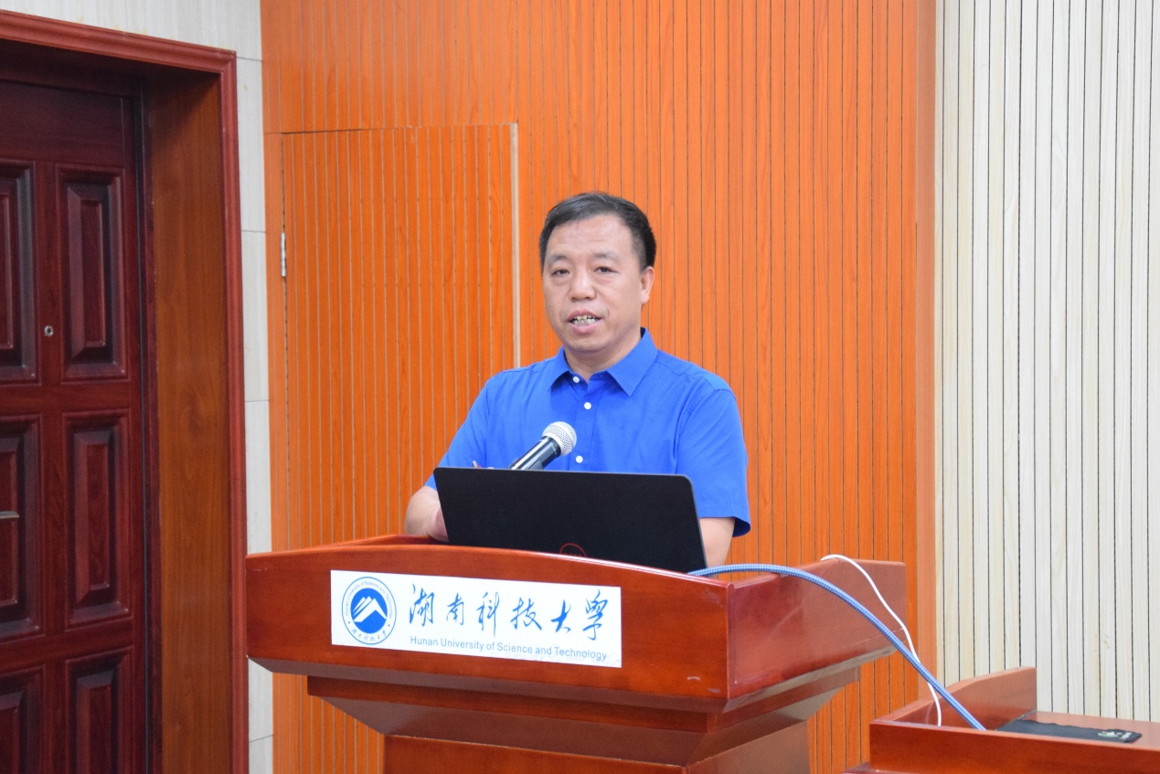 会议伊始,教育技术学系负责人刘斌博士从专业简介、人才培养、基本条件、师资队伍、就业方向等五个方面进行专业介绍。他重点介绍了教育技术学专业的办学历史、人才培养方案及课程体系、办学条件及实验实训平台、师资力量、就业方向。最后,他围绕“大学四年如何度过”这个话题对同学们进行寄语,希望同学们努力学习、夯实基础,参加活动、全面发展,积极上进、永不言败,锻炼身体、幸福生活,认清自我、培养特长。