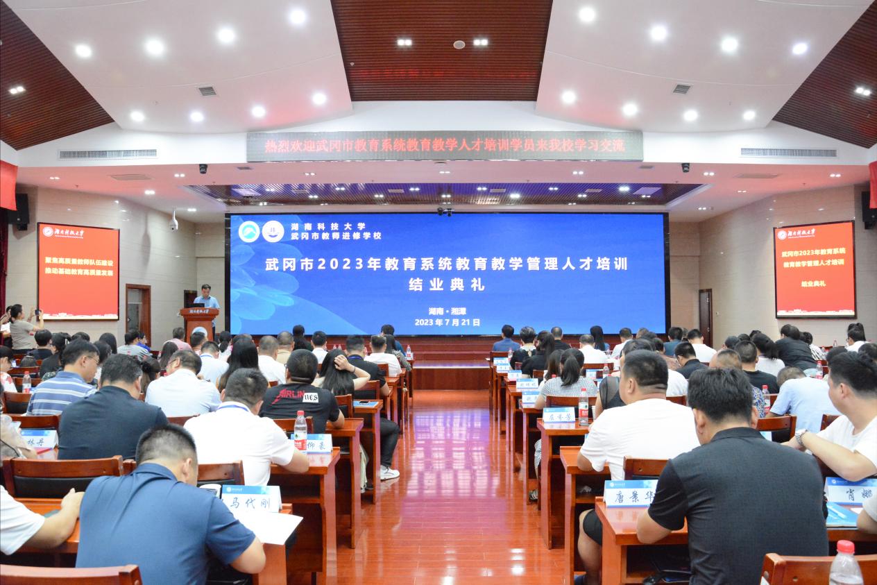 2023年7月21日,武冈市教育系统教育教学人才培训结业典礼在湖南科技大学立德楼五楼报告厅隆重举行,湖南省武冈市人民政府副市长(挂职)周志强,武冈市教育局党委委员、副局长姚学宏,武冈市教师进修学校校长孙细凤、武冈市委组织部人才办主任杨军、湖南科技大学继续yl88858永利集团副院长陈端来,以及全体学员200多人参加本次结业典礼。结业典礼由yl88858永利集团副院长张进良主持。