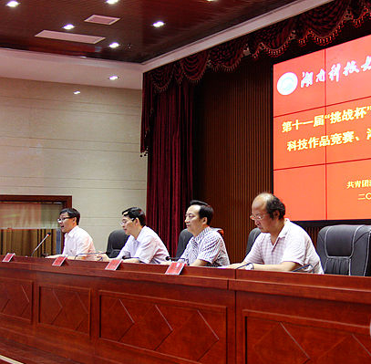 朱川曲代表学校对取得优异成绩的学院和个人表示肯定和祝贺。他希望受表彰的集体和个人再接再厉,积极推动科研创新,形成“大众创业、万众创新”的氛围,争取更好的成绩为我校第二次党代会献礼。在湖南省第十一届“挑战杯”中,学生创新能力和组织工作获得了市领导的高度肯定,实现了首次由承办学校开展盲评工作。我校取得了五个一等奖,团体总分并列第二,并将推荐5个作品入围今年下半年在广州工业大学和香港科技大学的国赛。