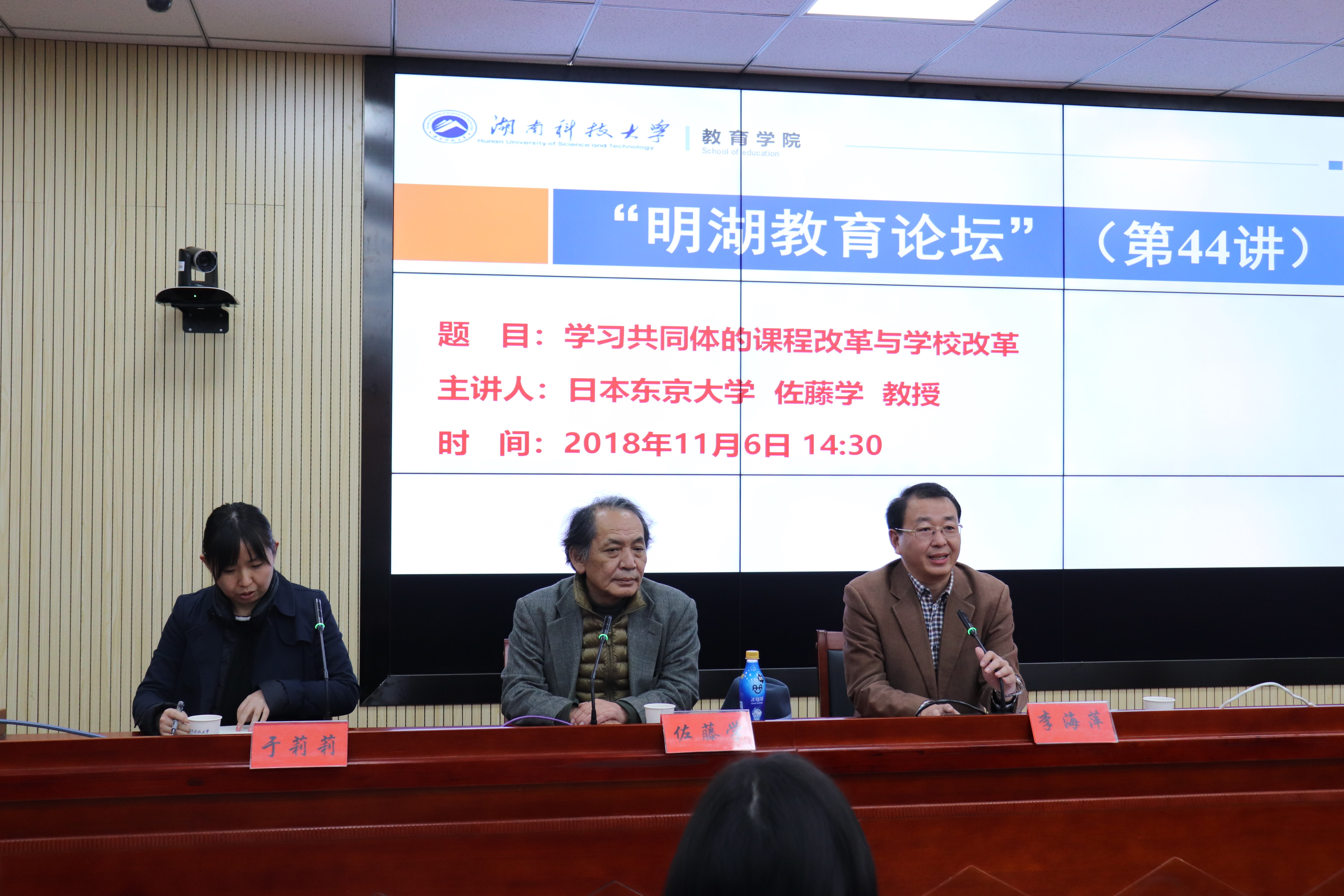 2018年11月6日下午,日本东京大学佐藤学教授做客“明湖教育论坛”(第44讲),为我院师生带来题为“学习共同体的课程改革与学校改革”的学术报告。报告会由yl88858永利集团院长李海萍教授主持。