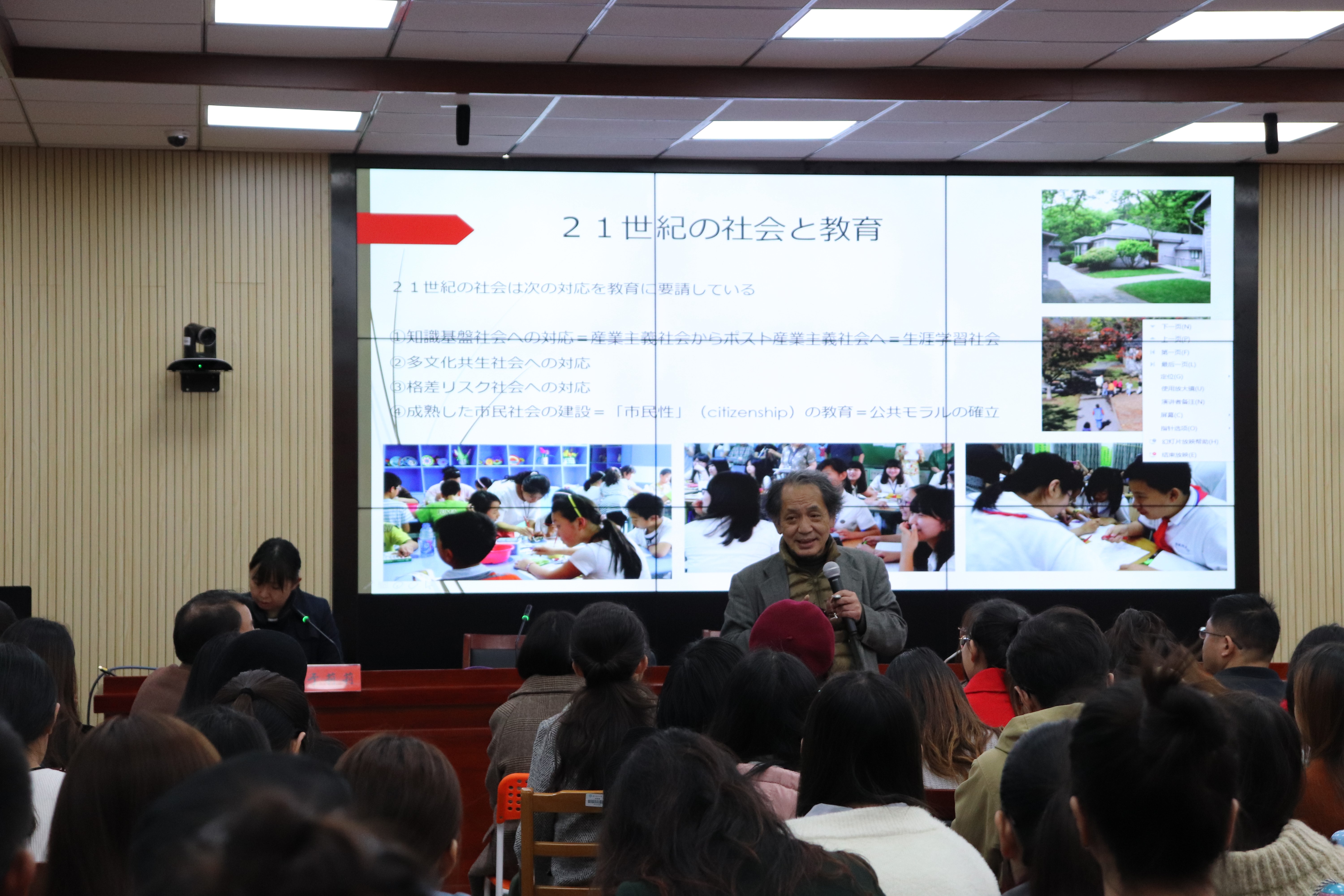 佐藤学首先介绍了21世纪学校教育的变化及其特点,通过对世界各国尤其是亚洲国家和地区学校体系、考试制度等方面的比较引出“学习共同体”这一概念。随后,针对第四次产业革命所带来的劳动力市场变化背景下教育和学校所面临的挑战以及学校教育改革如何适应社会这一问题,提出改革应树立明确的教育愿景和重新建构学校教育。他强调,要进行主动的深度学习,特别是教育教学应以理解和探究为主;“未来的学校应该是一个学习共同体,教师和学生在课堂上应该是平等的,相互倾听、一起学习”——这是一场“静悄悄的革命”。期间,佐藤学结合自己多年来对世界各地学校的走访和研究,以丰富的图片和案例展示分享了自己在学校改革中的经历和经验,提出要在课程改革和学校改革中创建包括尊严、信任、互惠、共同四大要素的学习共同体。
