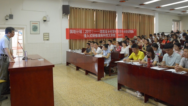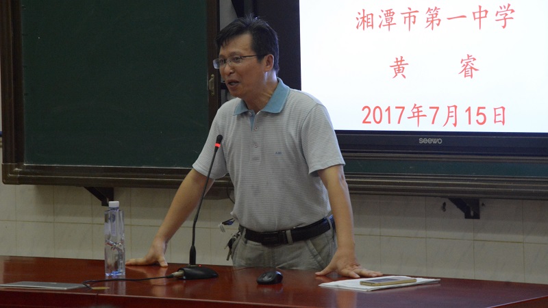国以才立,政以才治,教育亦以才兴。2017年7月15日上午8.30分,为了进一步提高骨干教师的综合能力,湘潭市一中党委书记黄睿于湘潭市一中西座的多媒体教室给国培研修A401班的一百四十余名学员开展了“互联网视野下的校本研修”课程。并通过此次课程培训,以期学员们了解教育发展动态,拓宽新视野,通过互联网教育,引导和培养教师用发展的眼光看教育,最终促进学生全面化、个性化、可持续化发展。