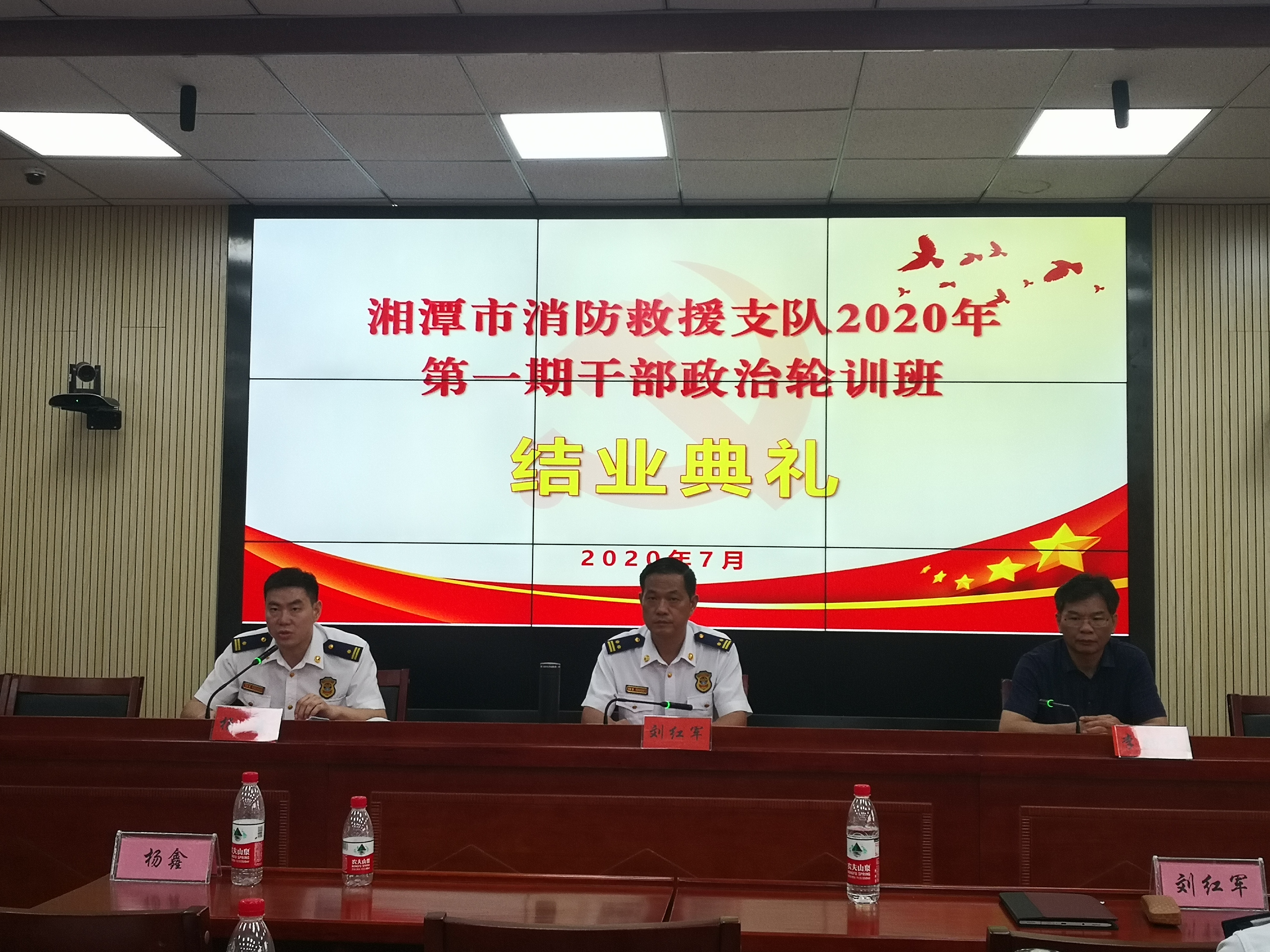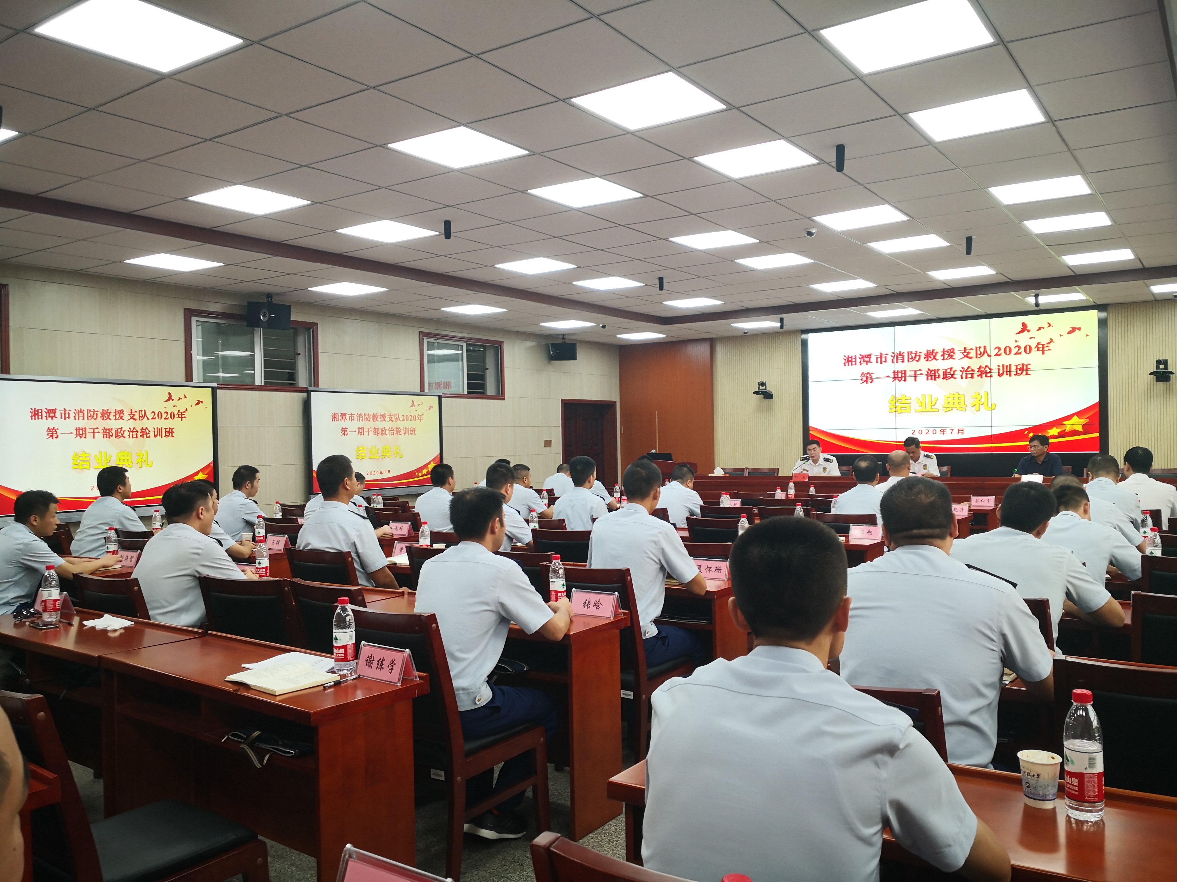 2020年7月17日下午,湘潭消防救援支队2020年第一期干部政治轮训班结业典礼在我院举行,培训班学员顺利结业。结业典礼由湘潭市消防救援支队副支队长杨鑫主持。