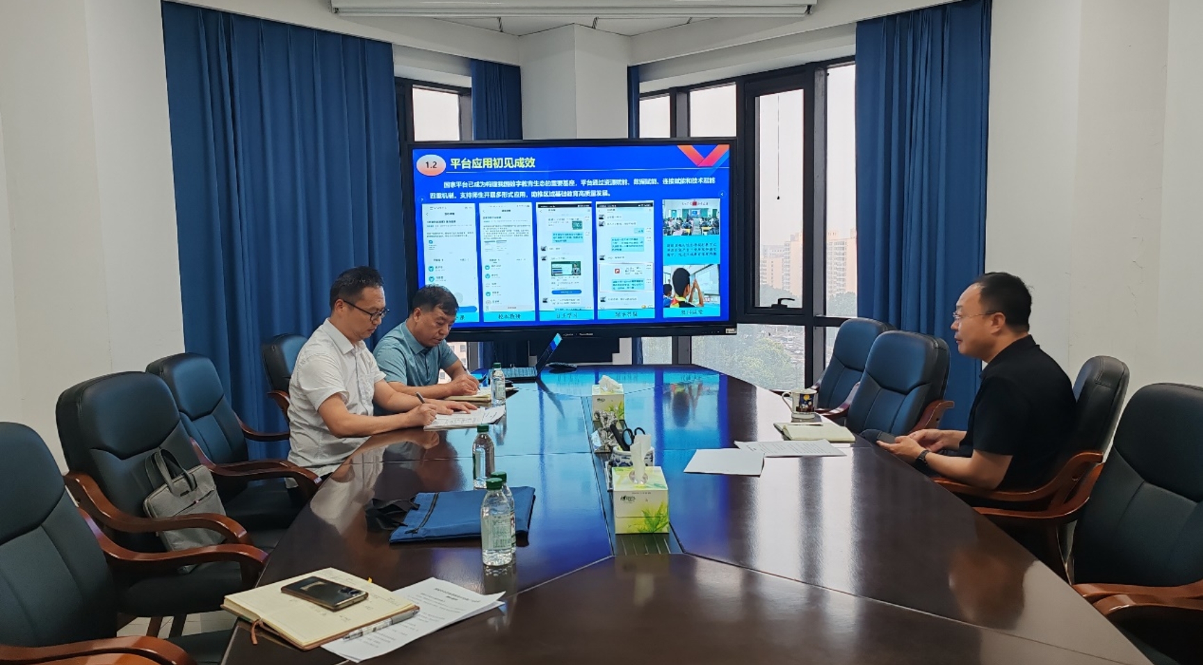 8月9日上午,湖南省“十四五”教育科学研究重点培育基地”教育信息化研究基地(技术应用方向)“核心成员张进良、张伟平、刘旭等赴北京教育部教育技术与资源发展中心(中央电化教育馆)调研国家中小学智慧教育云平台的应用情况,中央电化教育馆副馆长杨非等参加座谈。