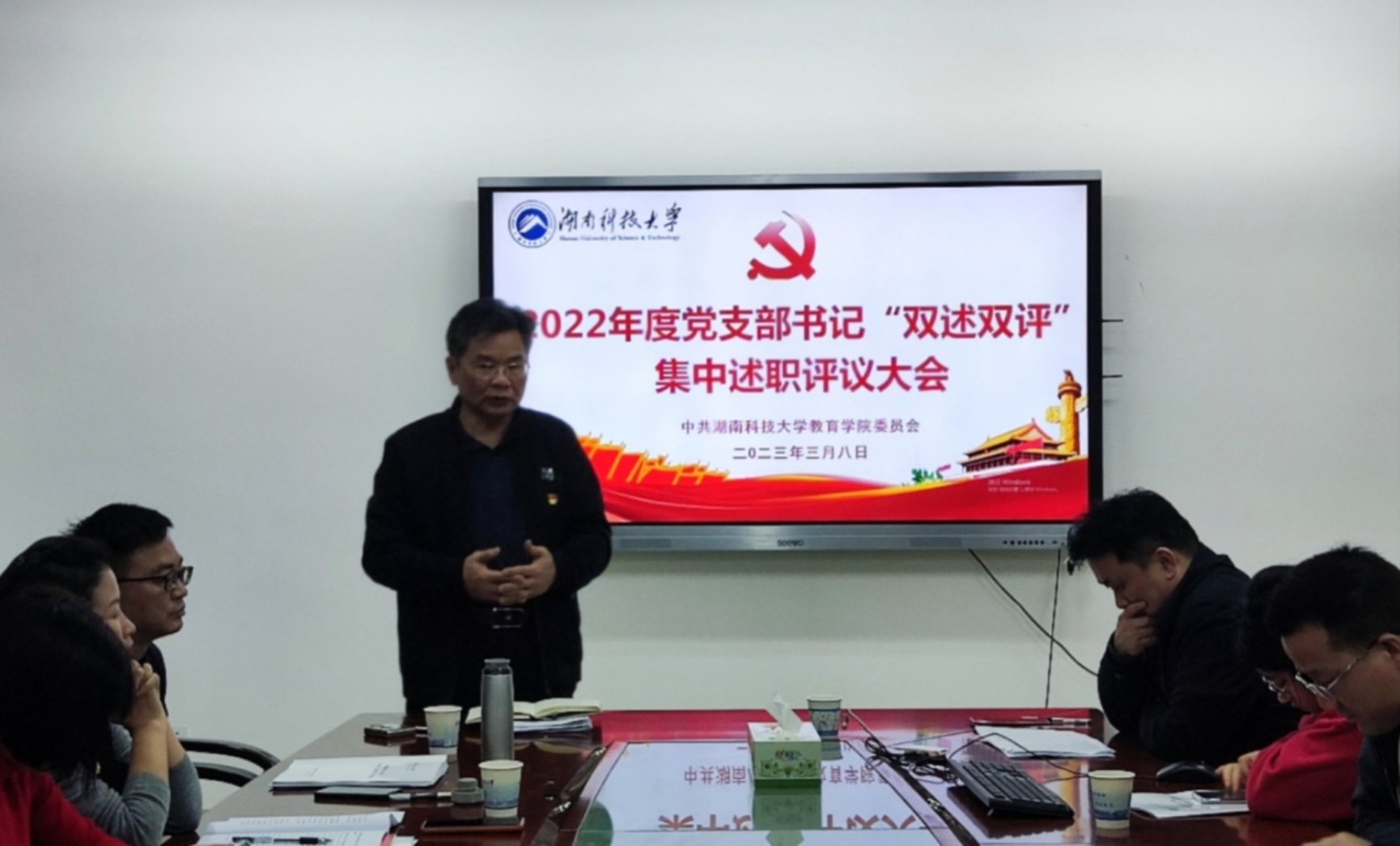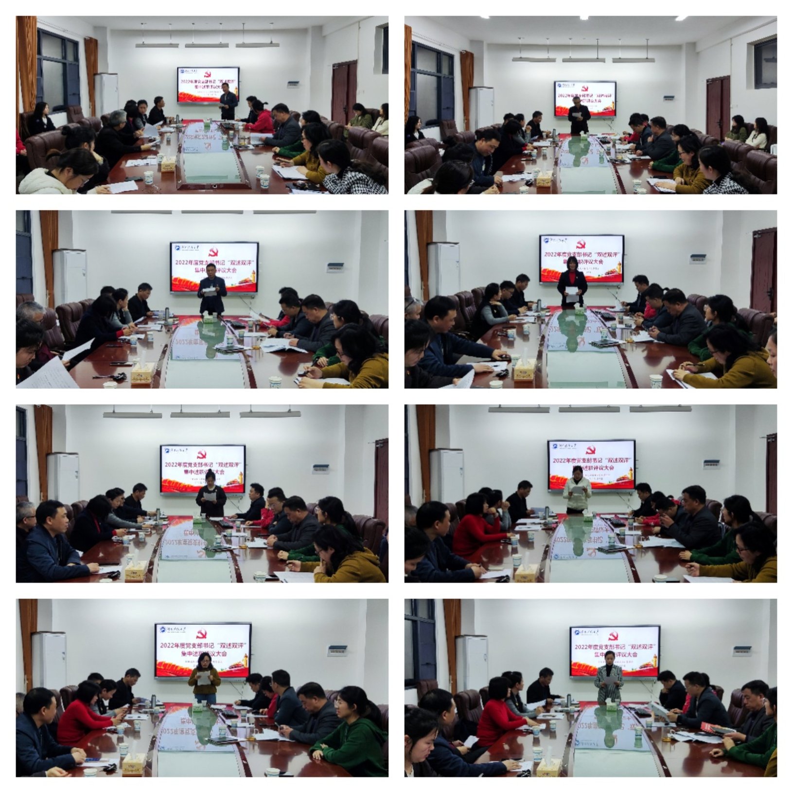 刘斌、刘成伟、夏永庚、练素华、胡银华、罗江林、张桂玉、王漫等8位党支部书记依次在大会上述职,并接受了党委书记点评和与会人员评议。最后,根据述评情况,结合日常工作表现,与会人员对8位党支部书记进行了综合评议。