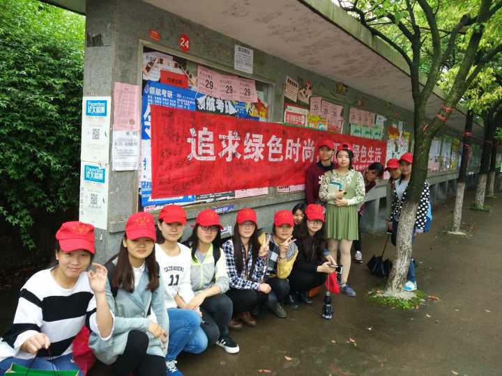 四月天气,仍飘着绵密的雨丝,却丝毫没能减退志愿者们的热情。集合完毕之后,志愿者们拉起“节约利用资源,倡导绿色生活”,“追求绿色时尚,拥抱绿色生活”的横幅,并率先在横幅上签下了自己的名字,一笔一划,书写着志愿者们热烈的情感。随后,志愿者们纷纷站上了各自的岗位,宣传工作有条不紊地进行着,只见他们热情地邀请过往学生参与活动。人来人往间,参与的学生越来越多,尽管下雨,她们也乐意停下她们的脚步,在横幅上签下自己的名字,只为了能在保护地球这件事上奉献出自己的一份力。人去了又来,来了又去,不知不觉,活动也逐渐接近尾声。在我们的采访中,志愿者们纷纷表示,虽然冒雨进行这次活动,但却不感到辛苦,因为这是一件很有意义的事情。保护地球,人人有责。