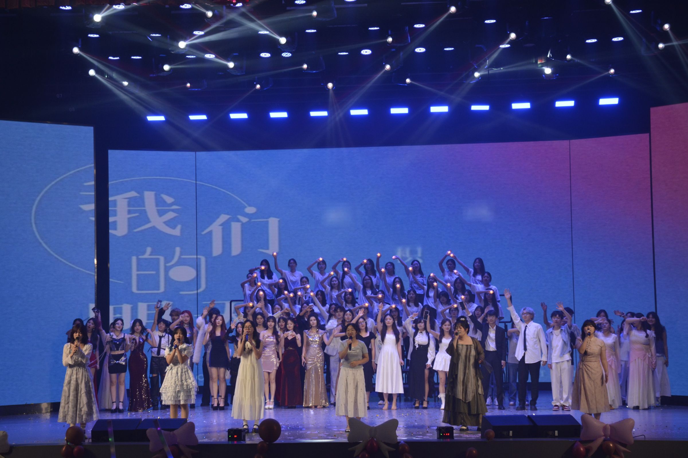 毕业晚会在爵士舞《灼翼新生》的跃动节拍中启幕,明快舞步瞬间引爆全场热情。器乐合奏《匆匆那年》的旋律流淌,悄然唤醒时光褶皱里的青春印记;教师合唱《朋友》饱含桃李深情,声声浸润离别衷肠。终章《我们的明天》以恢弘和声将祝福凝成星河,音符跃作前程星轨,余韵绵长。